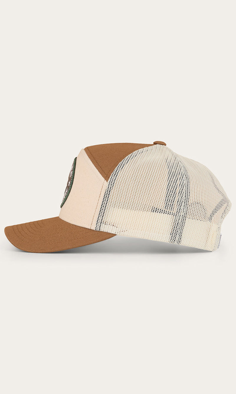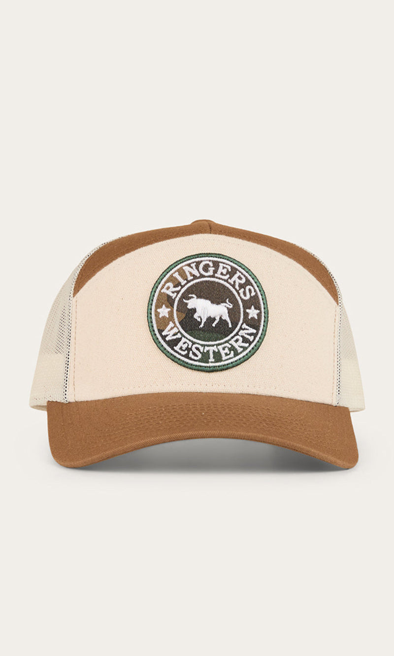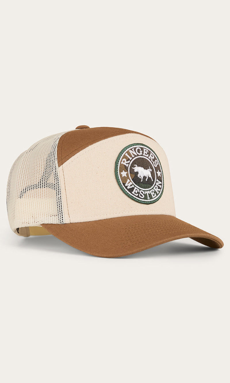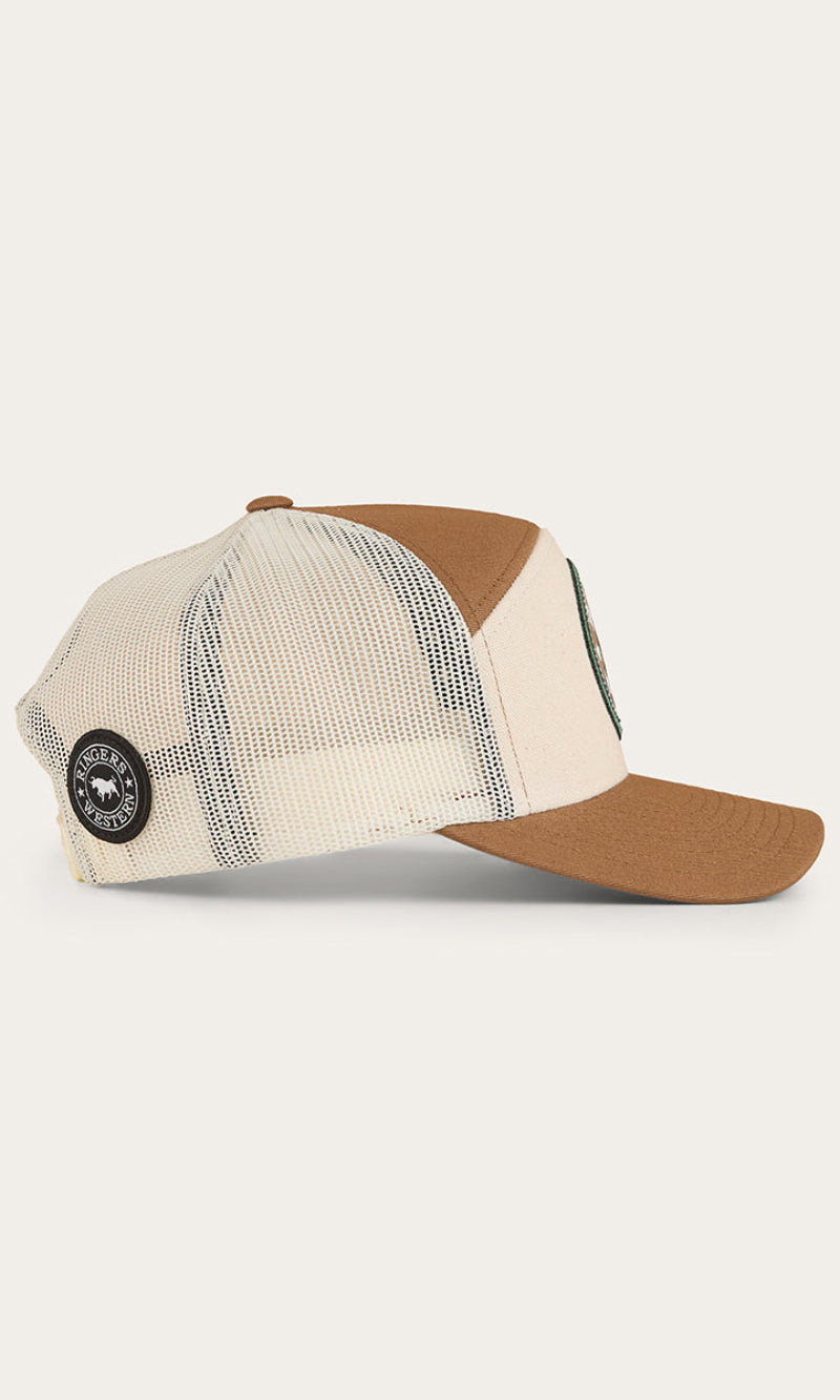 Crafted with durability and comfort in mind, this cap has been created from a cotton twill fabric featuring rear mesh panels, providing optimal ventilation and breathability. The fashionable 7 panel design is a modern update on the classic trucker, perfect for the fashion forward cowboy or cowgirl. An adjustable snapback allows for a comfortable and customisable fit, making this cap suitable for the majority of head sizes. A Ringers Western woven badge sits up front and centre in true Ringers style.