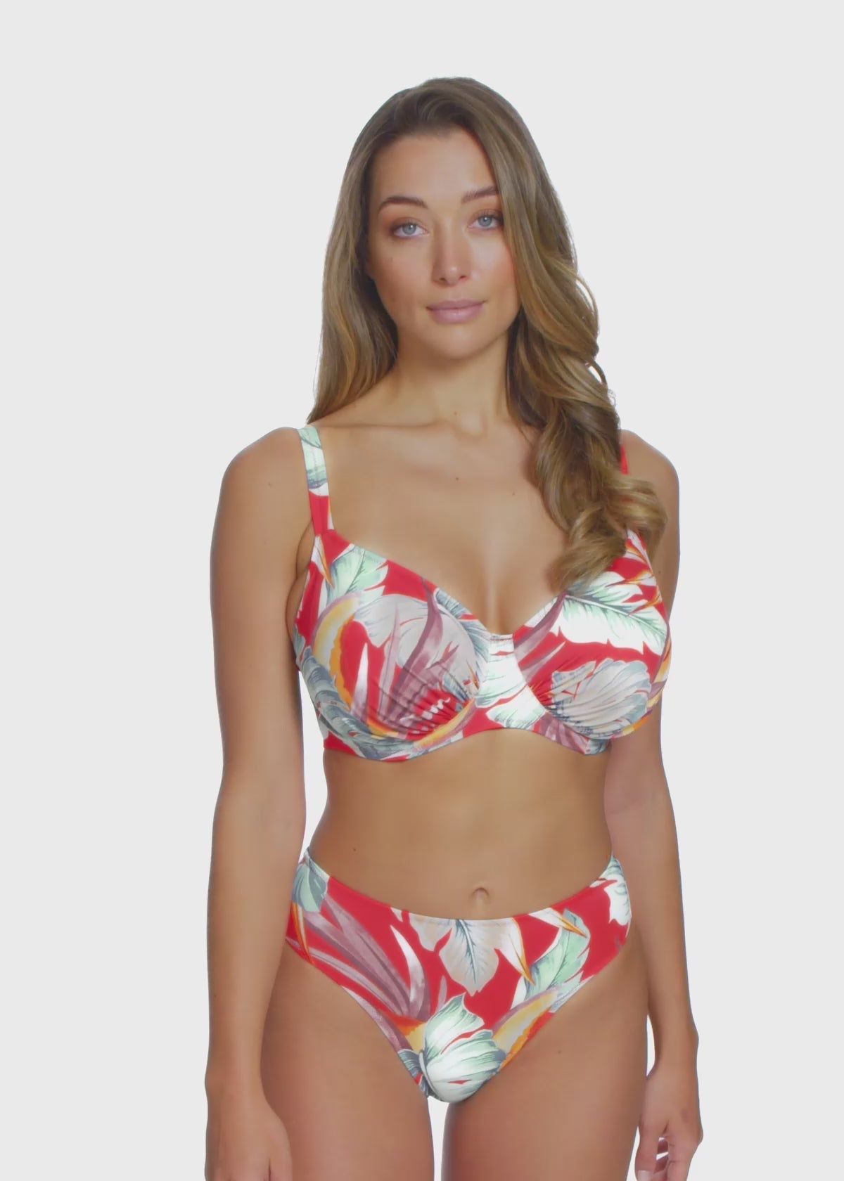 Back by popular demand, Bamboo Grove returns this Spring/ Summer in new colourway, Hot Chilli. Stretched across a rich red base, the botanical print of palm fronds, banana and monstera leaves flourish in a mix of green and yellow tones. Choose your favourite styles from a line-up of Fantasie favourites including our new UW Plunge Swimsuit that features a flattering deep neckline.