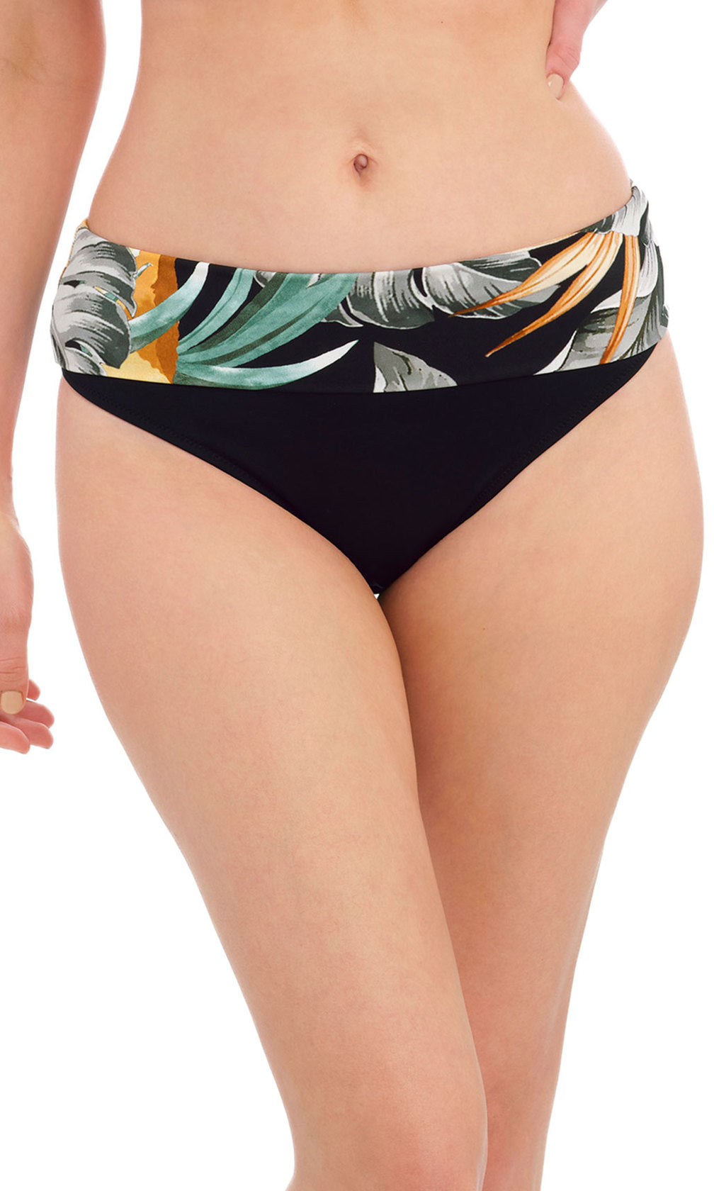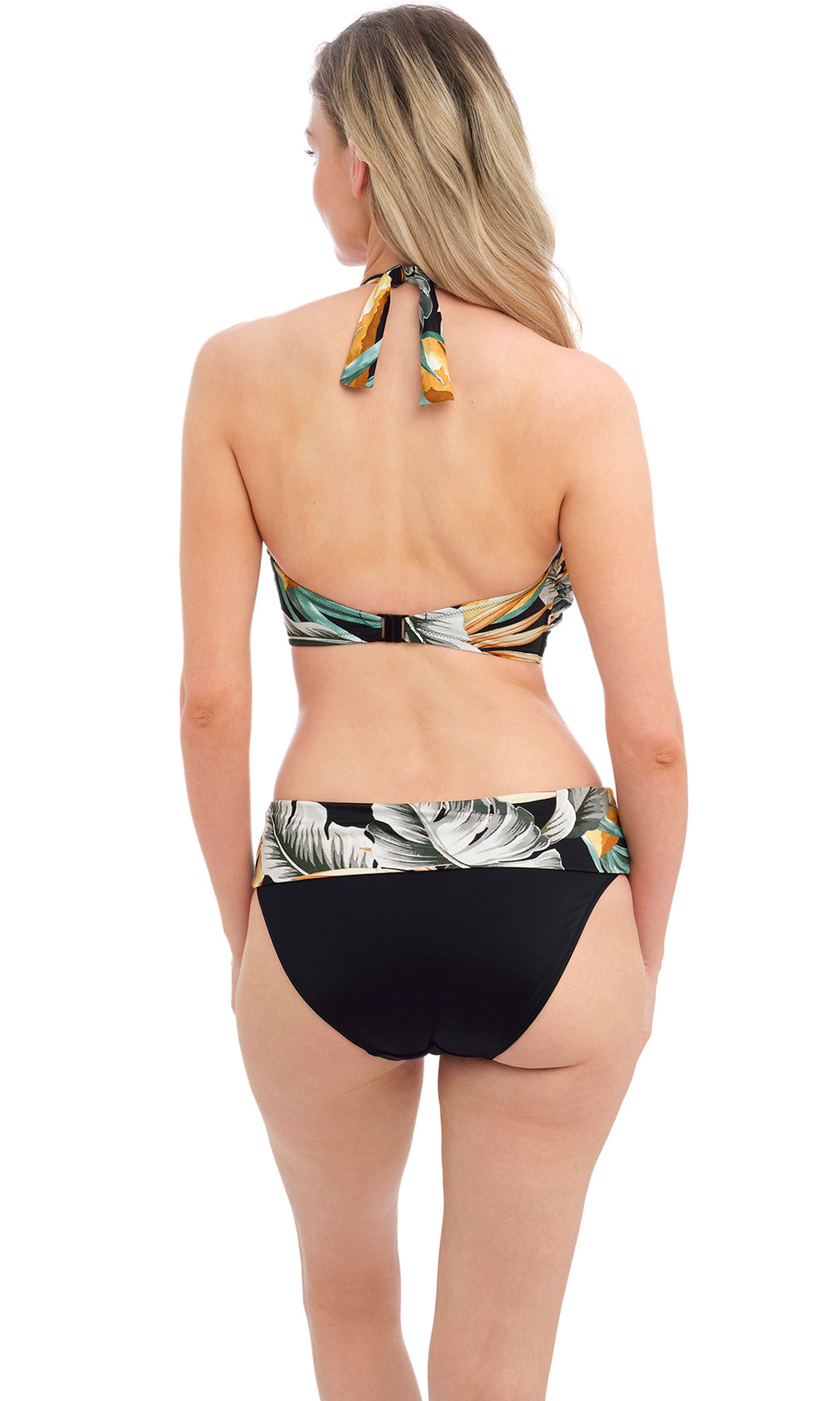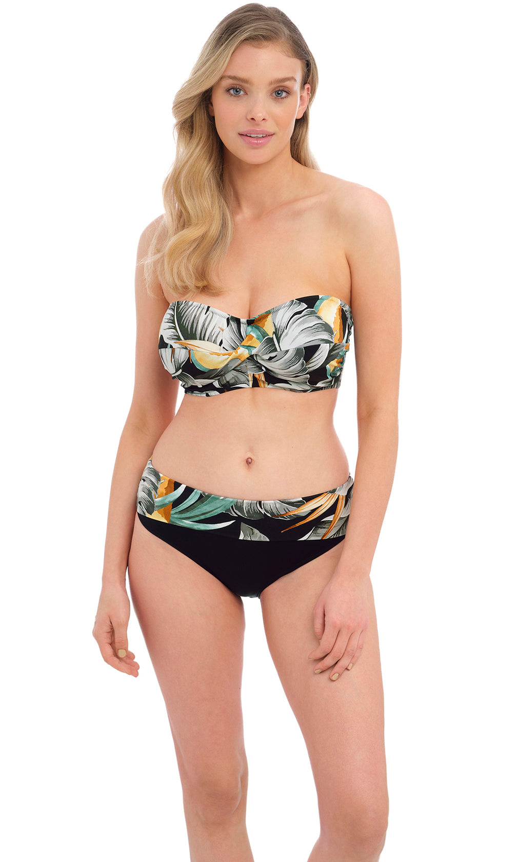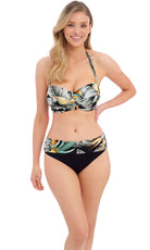 Bamboo Grove features a large-scale botanical print of palm, banana and monstera leaves in a greyscale, illustrated design. Resting upon a black ground, we just love how the sage green and mango accent tones have been weaved into the design through the leaves and abstract cantaloupe slices. Choose your favourite styles from a line-up of Fantasie favourites, and complete the look with a Kaftan.