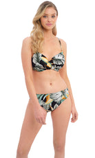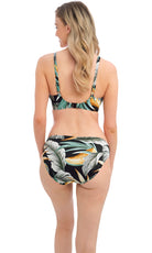 Bamboo Grove features a large-scale botanical print of palm, banana and monstera leaves in a greyscale, illustrated design. Resting upon a black ground, we just love how the sage green and mango accent tones have been weaved into the design through the leaves and abstract cantaloupe slices. Choose your favourite styles from a line-up of Fantasie favourites, and complete the look with a Kaftan.