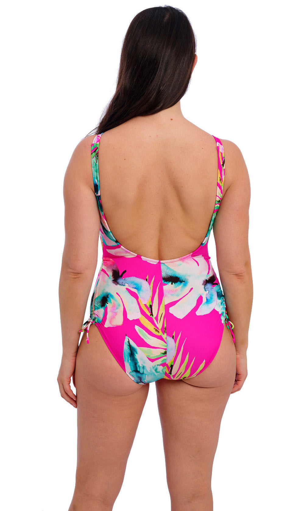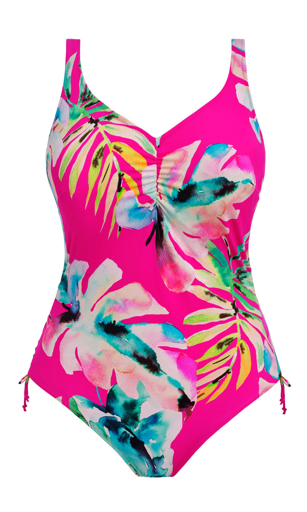 Introducing Carabelita in Peony for this spring/summer, an exclusive Italian watercolour print collection that is truly reminiscent of tropical travels. The playful pink base is adorned with layered watercolour jungle leaves. Check out how our UW Swimsuit features adjustable side ruching to create a flattering look.