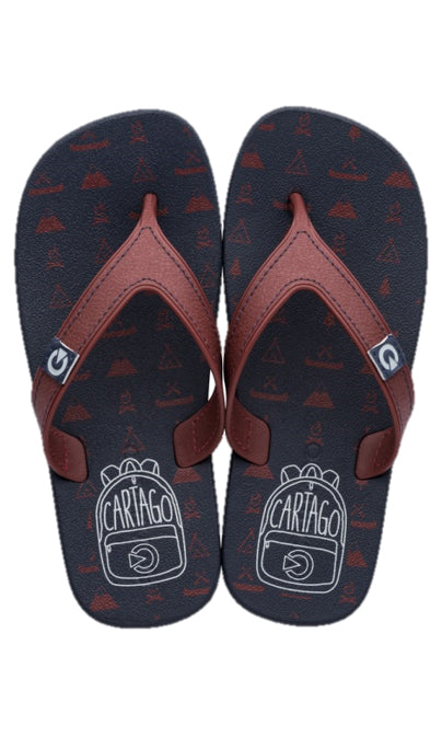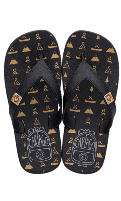 The Dakar Kids is a sleek low-profile flip flop featuring a stylish leatherette upper and a printed footbed that every little adventurer will love!