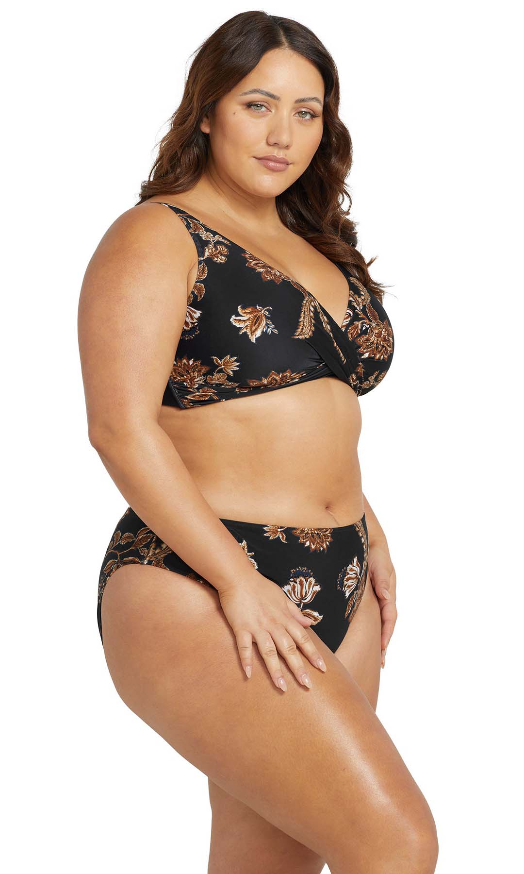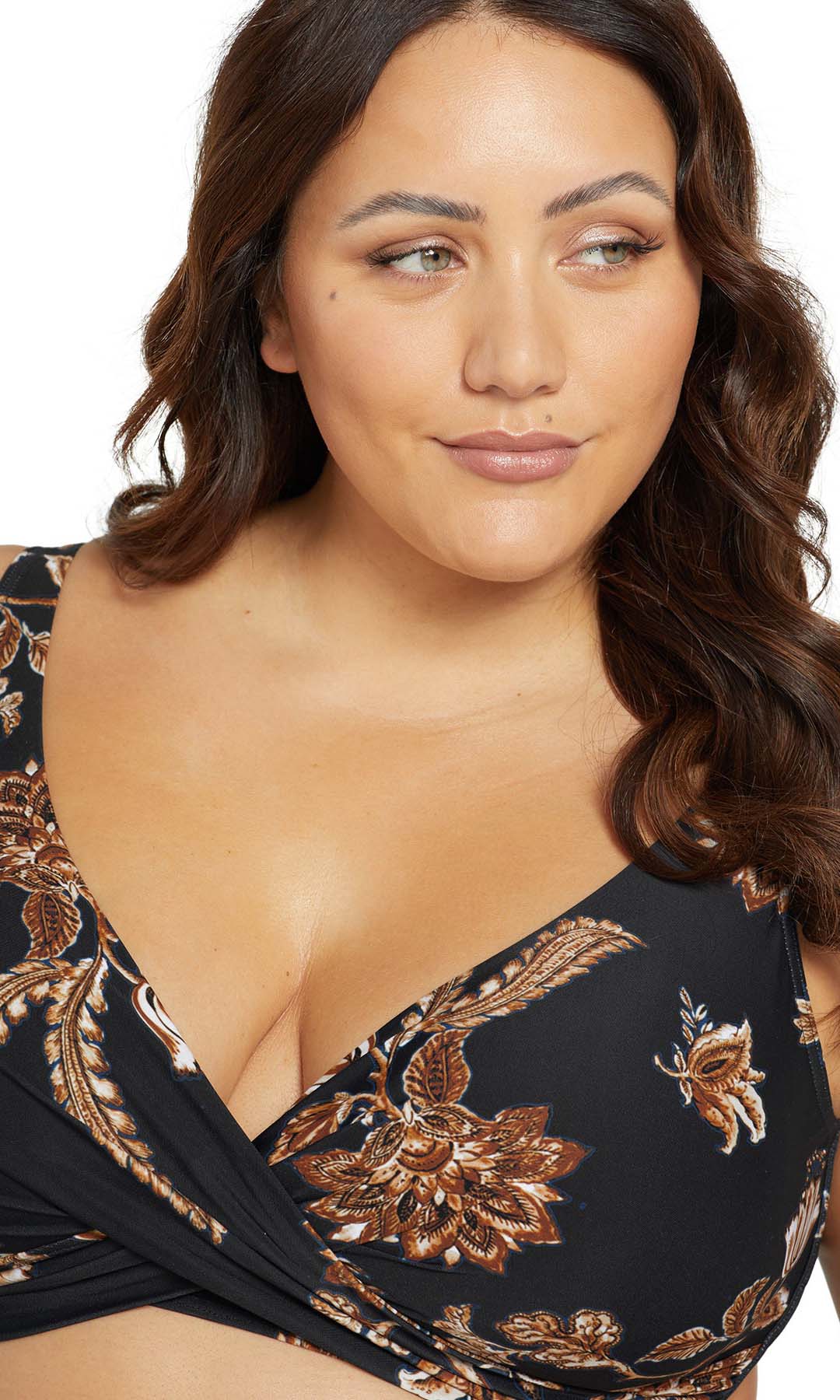 - Cross over front - The front of this curvy swimsuit is a cross over design that flatters the shape of your bust and adds extra wirefree support.