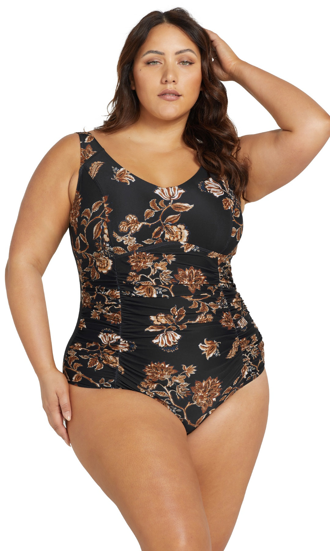 Artesands Fits Your Curves. Raphael is our full support one piece style with all the bells and whistles. This curve fit and plus size one piece swimsuit has underwire support to fit a E cup to F cup. This swimsuit has an internal bra fitting, and full body 360 degree powermesh for body sculpting confidence. Raphael is our most modest shape with full coverage and a lower leg line.
