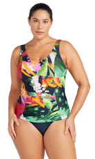 Artesands Fits Your Curves. Raphael is our full support swimsuit style with all the bells and whistles. This curve fit and plus size tankini top has underwire support to fit a E cup to F cup. This swimsuit has an internal bra fitting, and full body 360 degree powermesh for body sculpting confidence. Our curve fit and plus size tankini tops are a long line to avoid the fabric riding up when you're in the water.