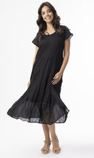 Cotton Dress Bias Pockets Gauze Essentials Black