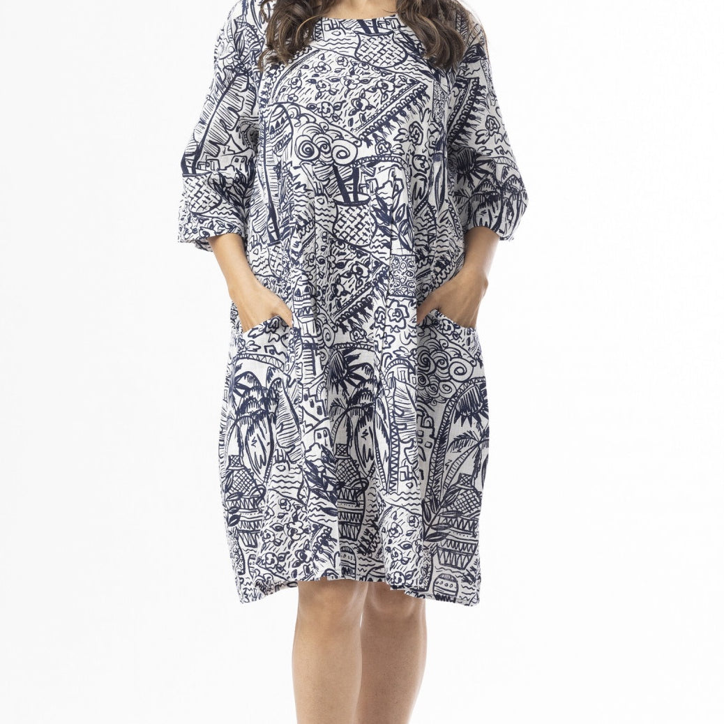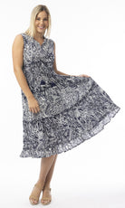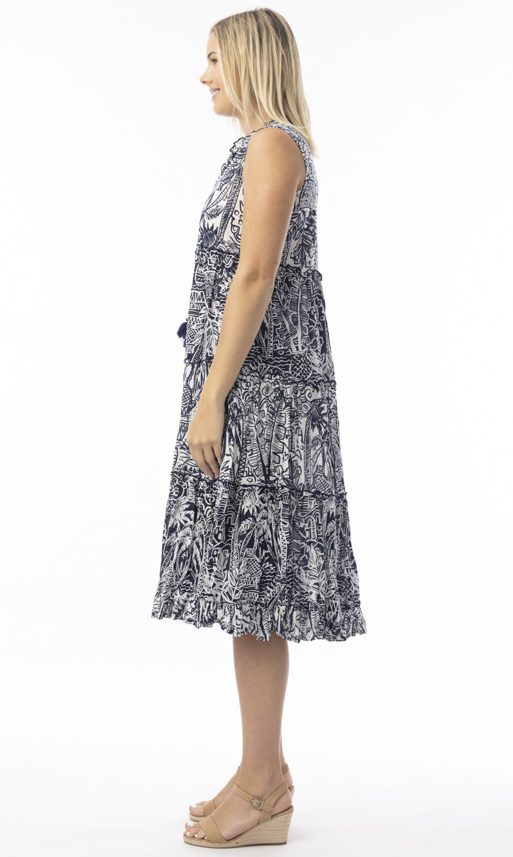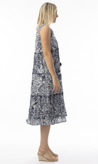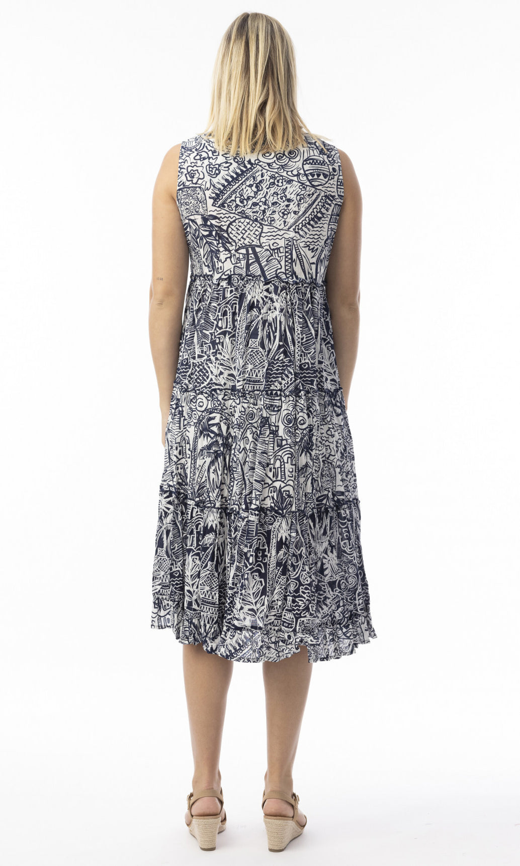 Crinkle Cotton Dress Boho Sleeveless Aksharay Navy