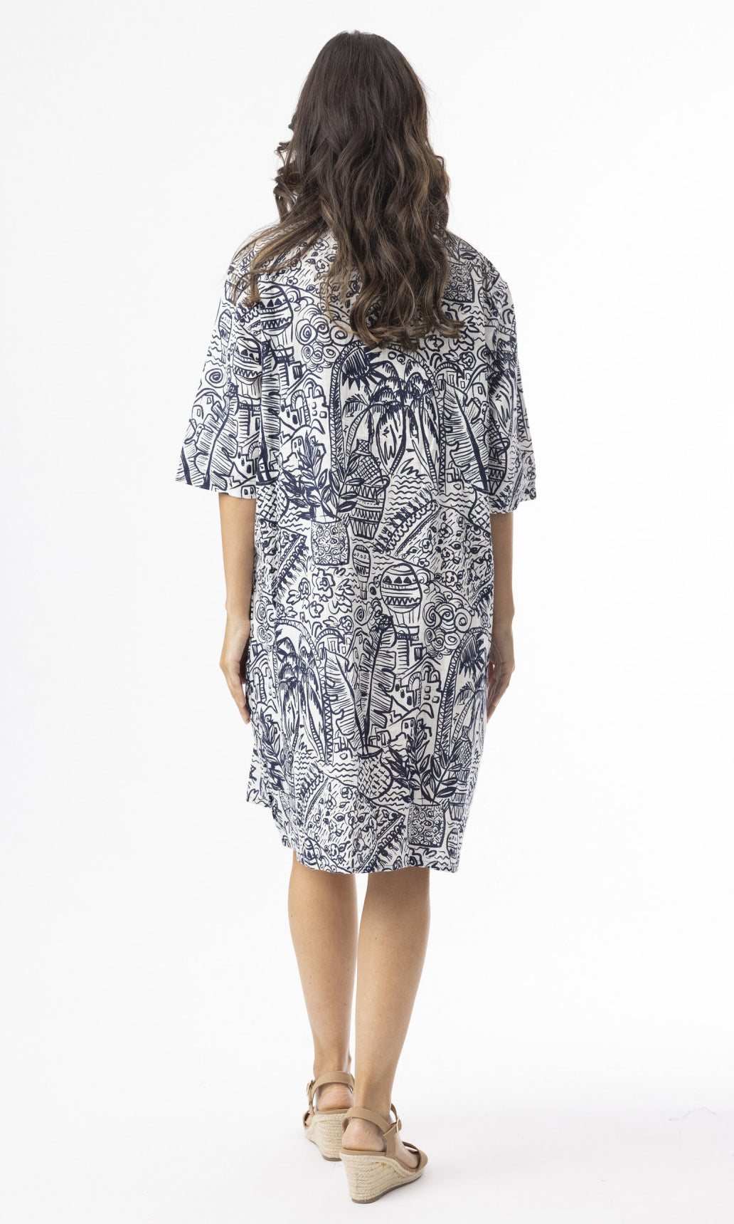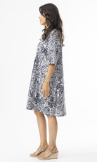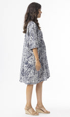 Cotton Dress Elbow Sleeve Aksharay Navy