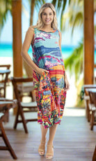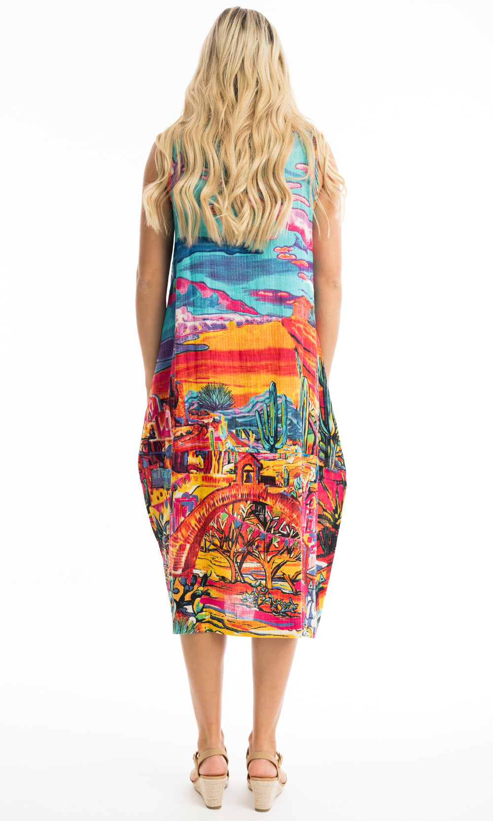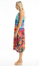 Enjoy the sunny weather in style with our Ocampo bubble dress. This sleeveless, knee-length dress features gorgeous colours and prints perfect for summer! The round neckline and relaxed fit ensure comfort, while the practical side pockets add functionality, making it a must-have addition to your everyday wardrobe. Embrace sunny style and make a statement wherever you go!