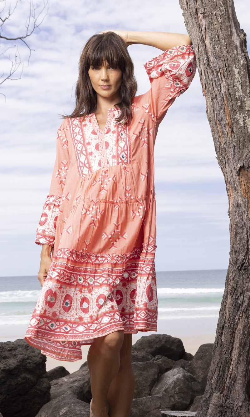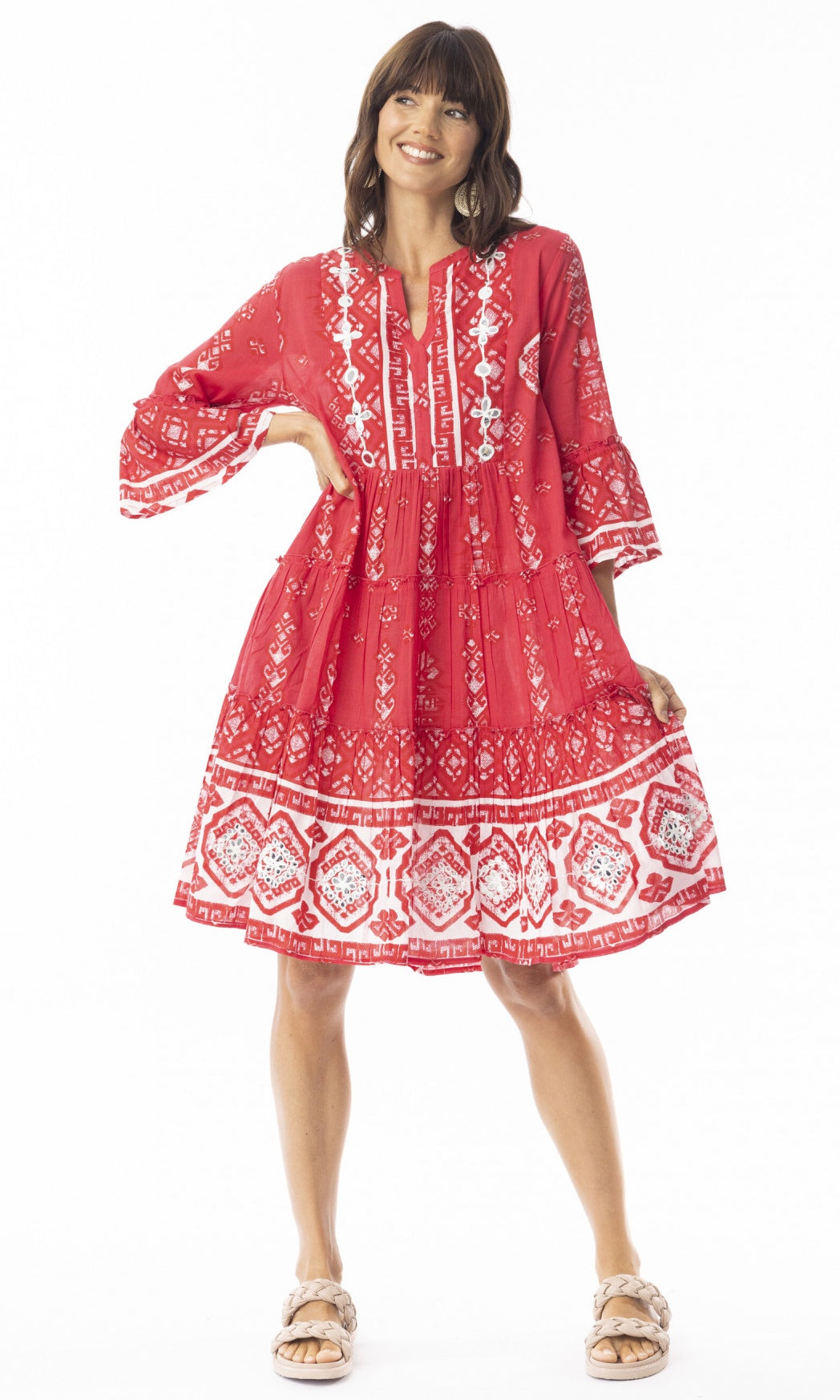 Cotton Dress Layered with Frill Sleeve Heidi Blue