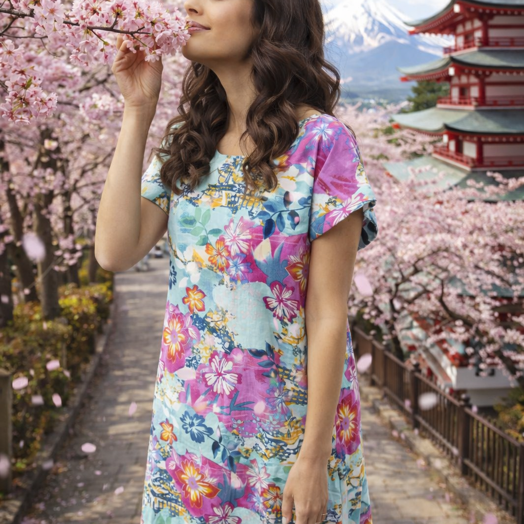 Cotton Dress Reversible Short Sleeve Round Neck Arashi