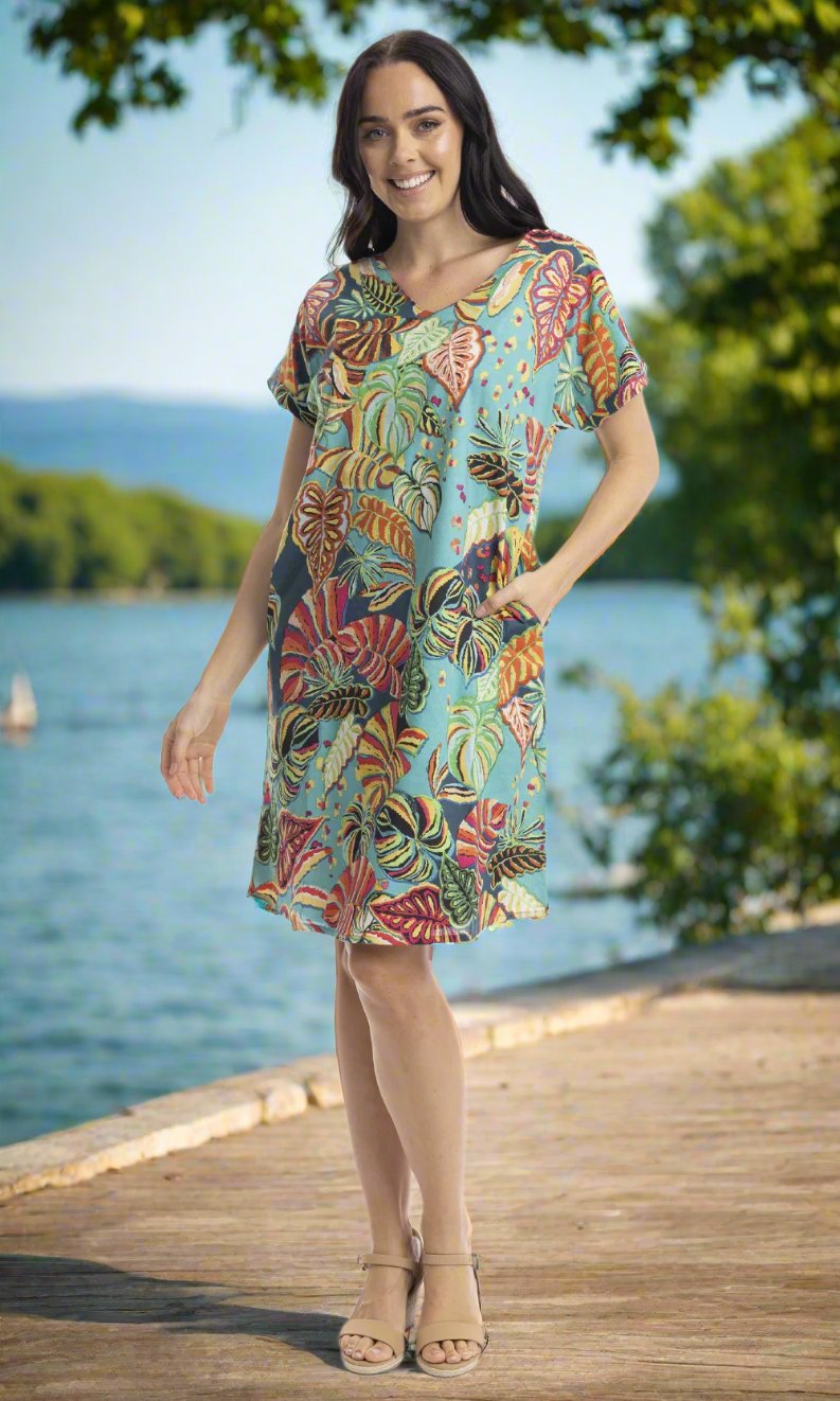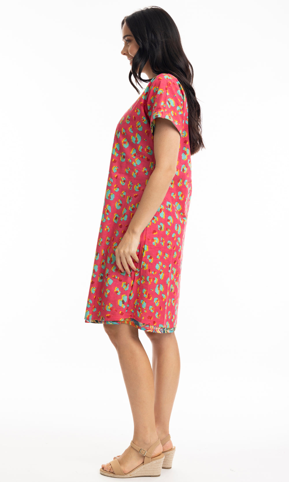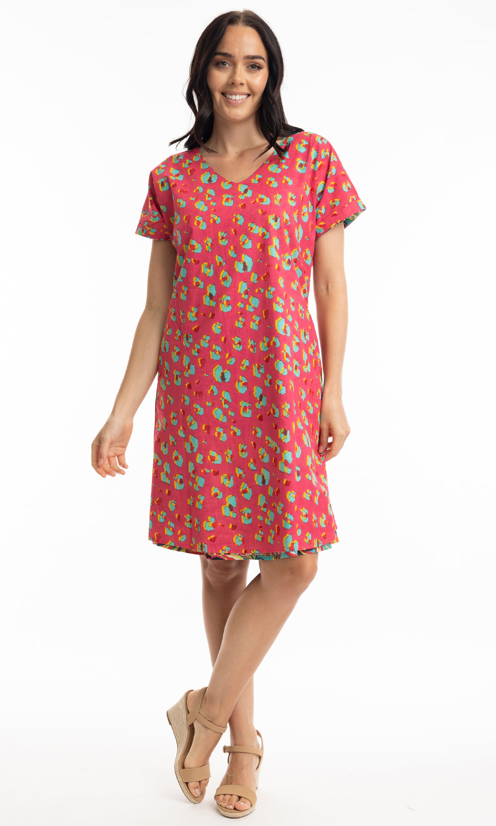 Cotton Dress Reversible Short Sleeve V Neck Calibishe