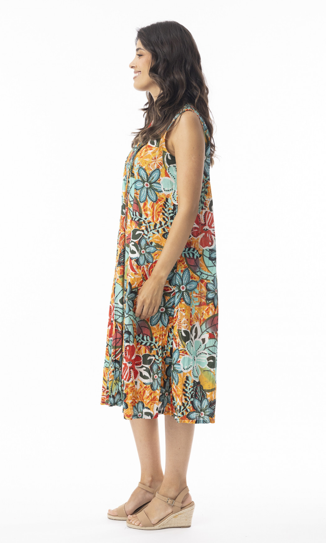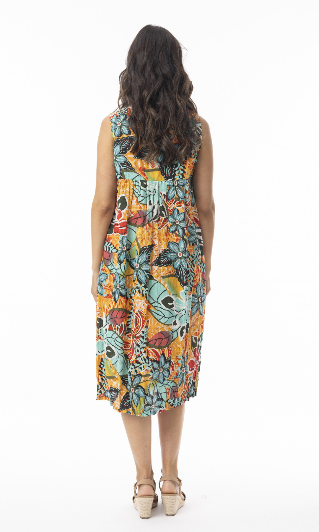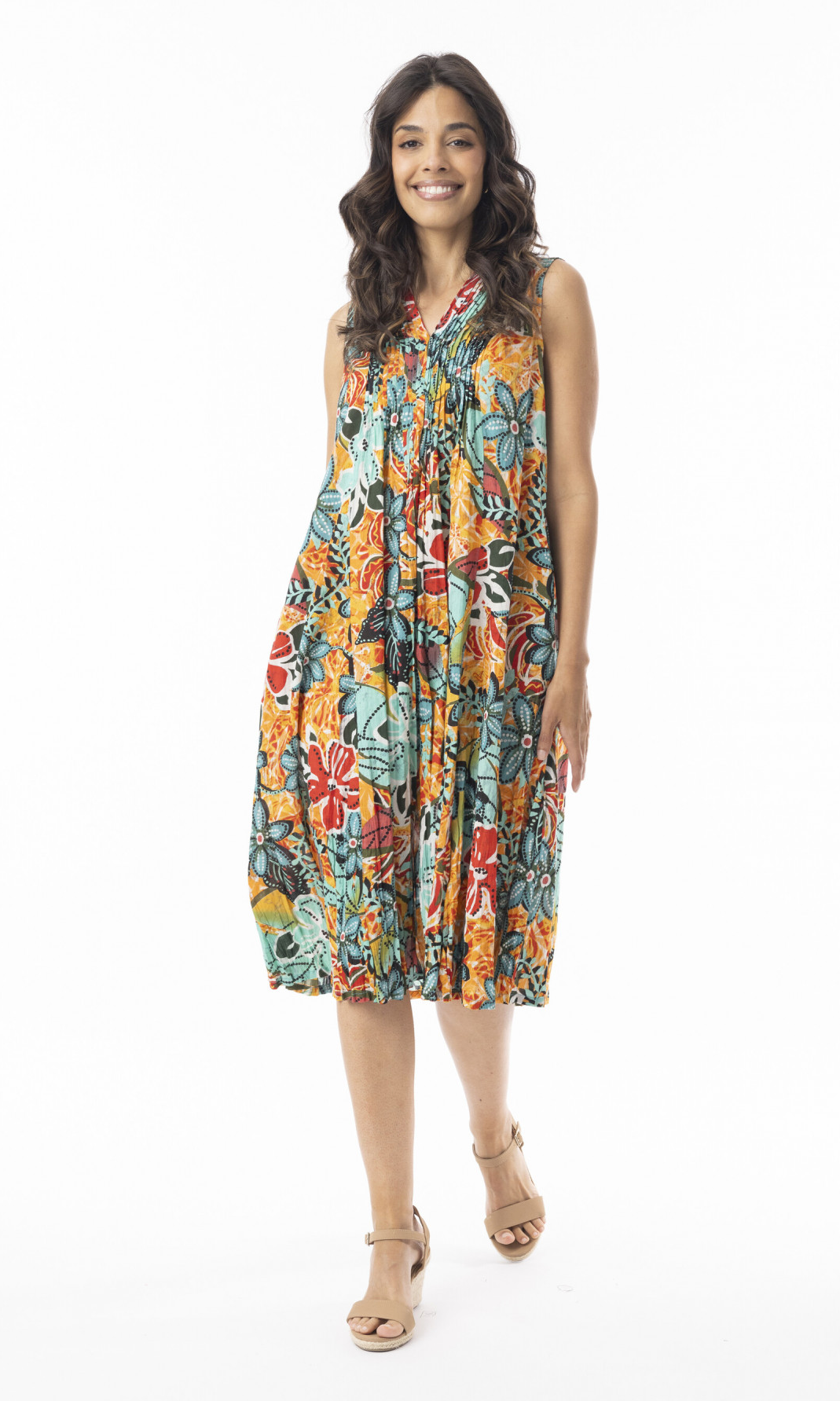 Cotton Dress Ruched V Neck Sleeveless Guaratiba