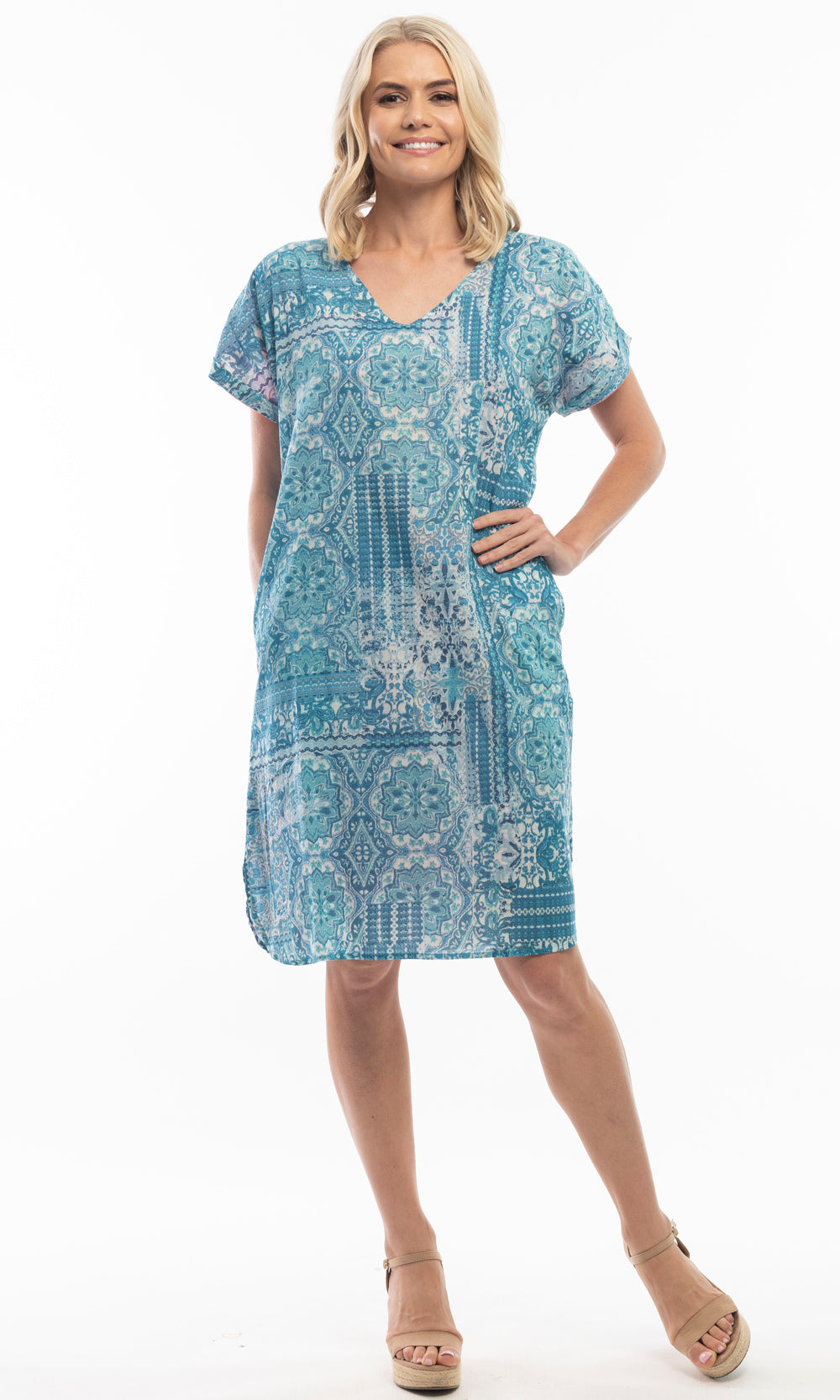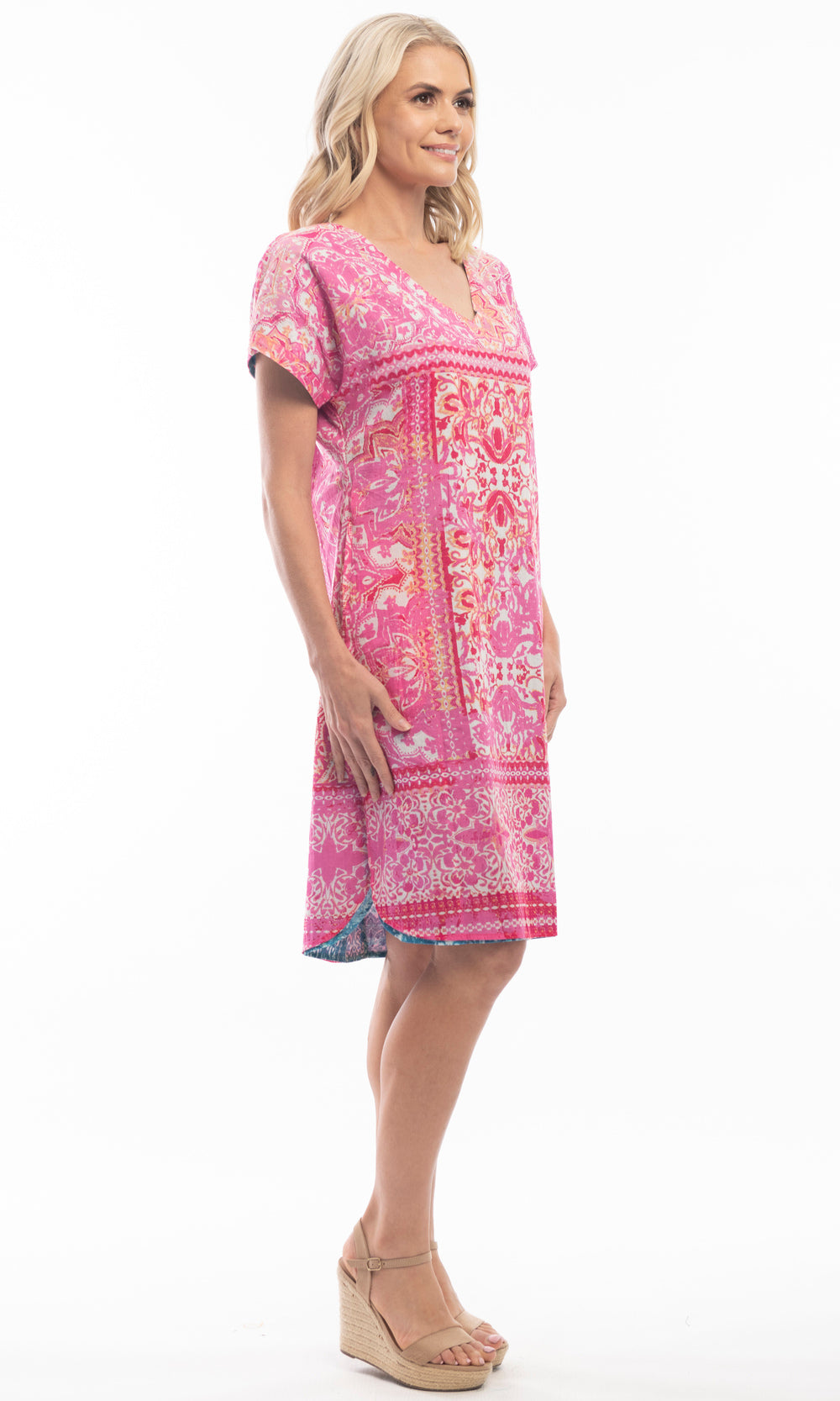 Cotton Dress Reversible Short Sleeve V Neck Kotor