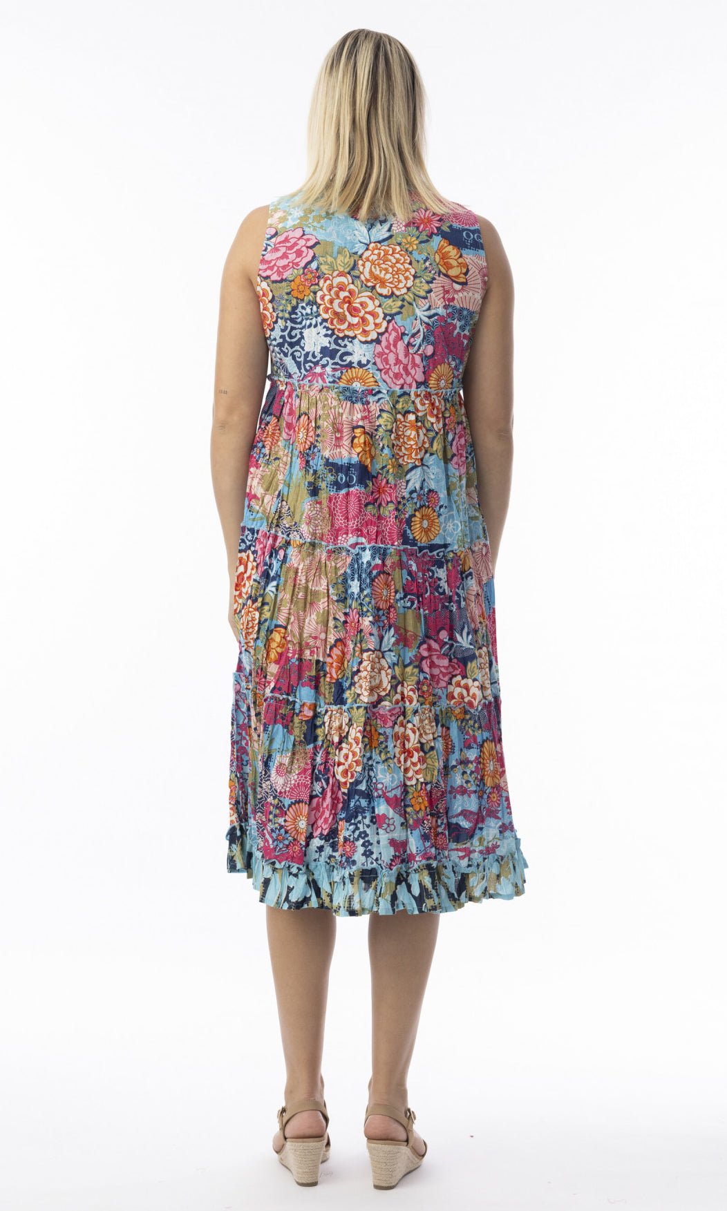Crinkle Cotton Dress Boho Sleeveless Ikebana