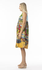 Crinkle Cotton Dress V Neck Pleated Ibiza