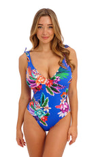 Halkidiki's eclectic print and vibrant colours are guaranteed to make you look and feel fantastic. With a tropical display of multi coloured florals across a bold blue base, the collection features a wealth of styles in varying coverage levels. The UW Plunge Swimsuit is one of our newest styles to date, and features a flattering deep V-neckline, concealed underwires and a light lining. Comfort and style combined.