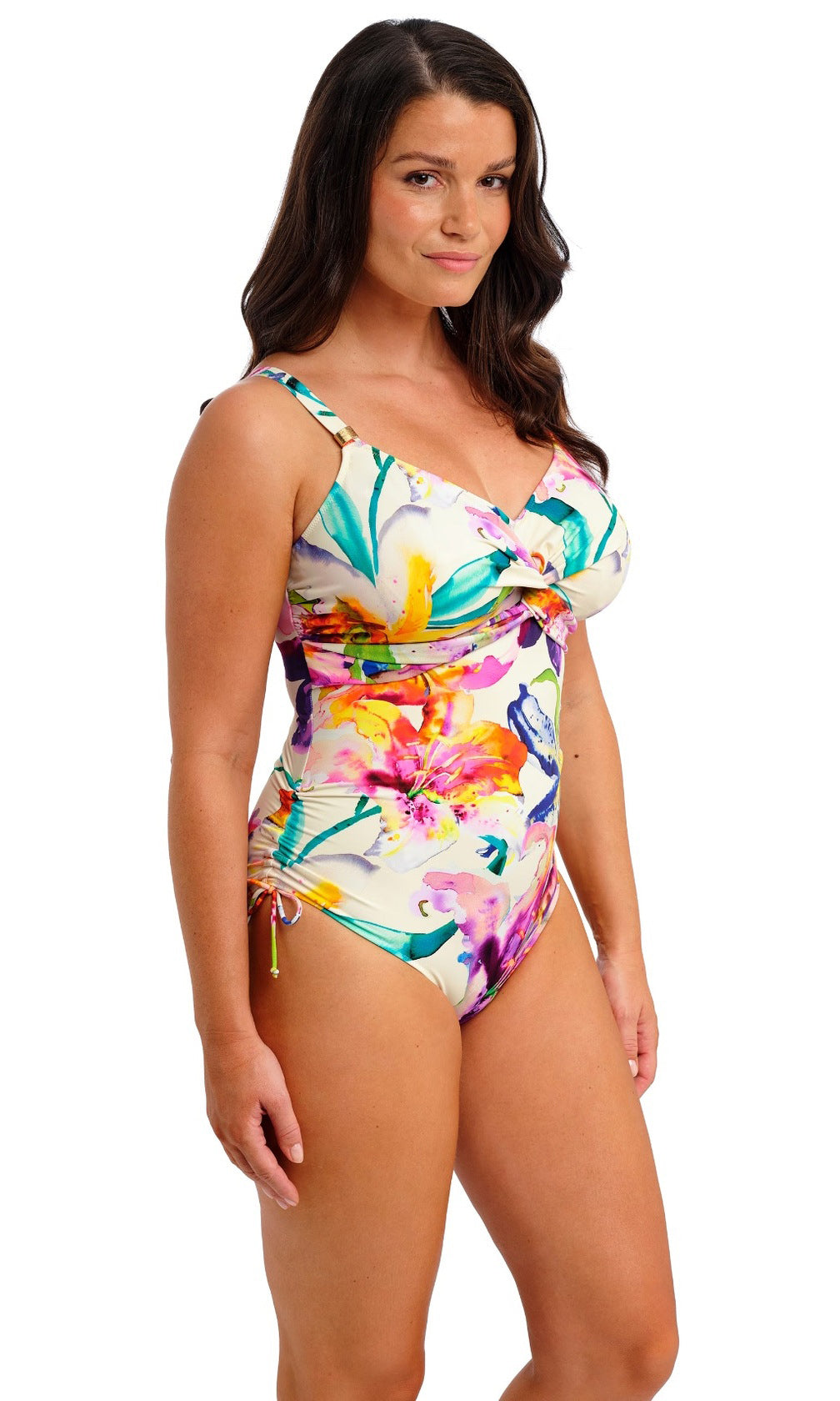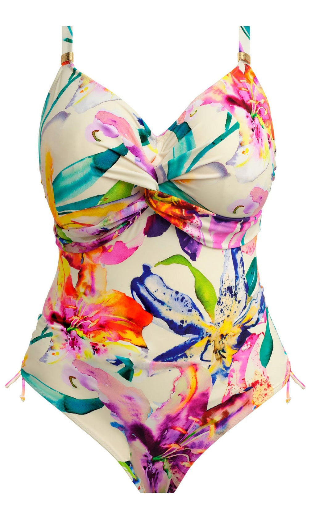 Add a touch of joy and escapism to your holiday wardrobe with all-new Iguazu Falls. Bursting with high-energy colours, this range features a lively mix of vibrant colour pops on a soft off white base. With an array of styles available, including our go to UW Gathered Full cup bikini top, a new look multi way plunge and a choice of co-ordinates - Don’t forget to complete your outfit with our Sarong!
