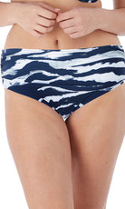 Discover Fantasie's Lindos Deep Gathered Bikini Brief in Ink, featuring a ruching effect to flatter the tummy area and a additional coverage.