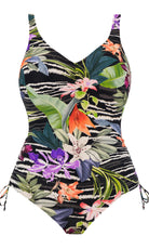 Maldives Black Tropical UW V-neck Swimsuit With Adjustable Leg