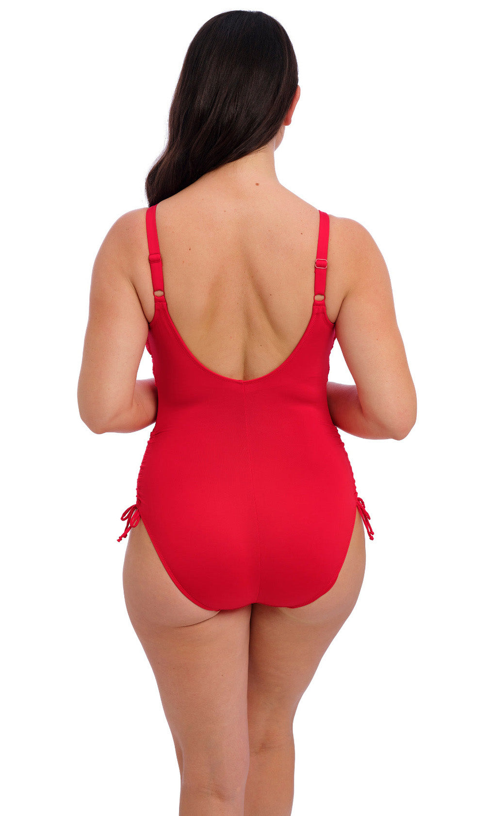 - Adjustable tie sides offer ruching effect to flatter tummy area and variation of body length