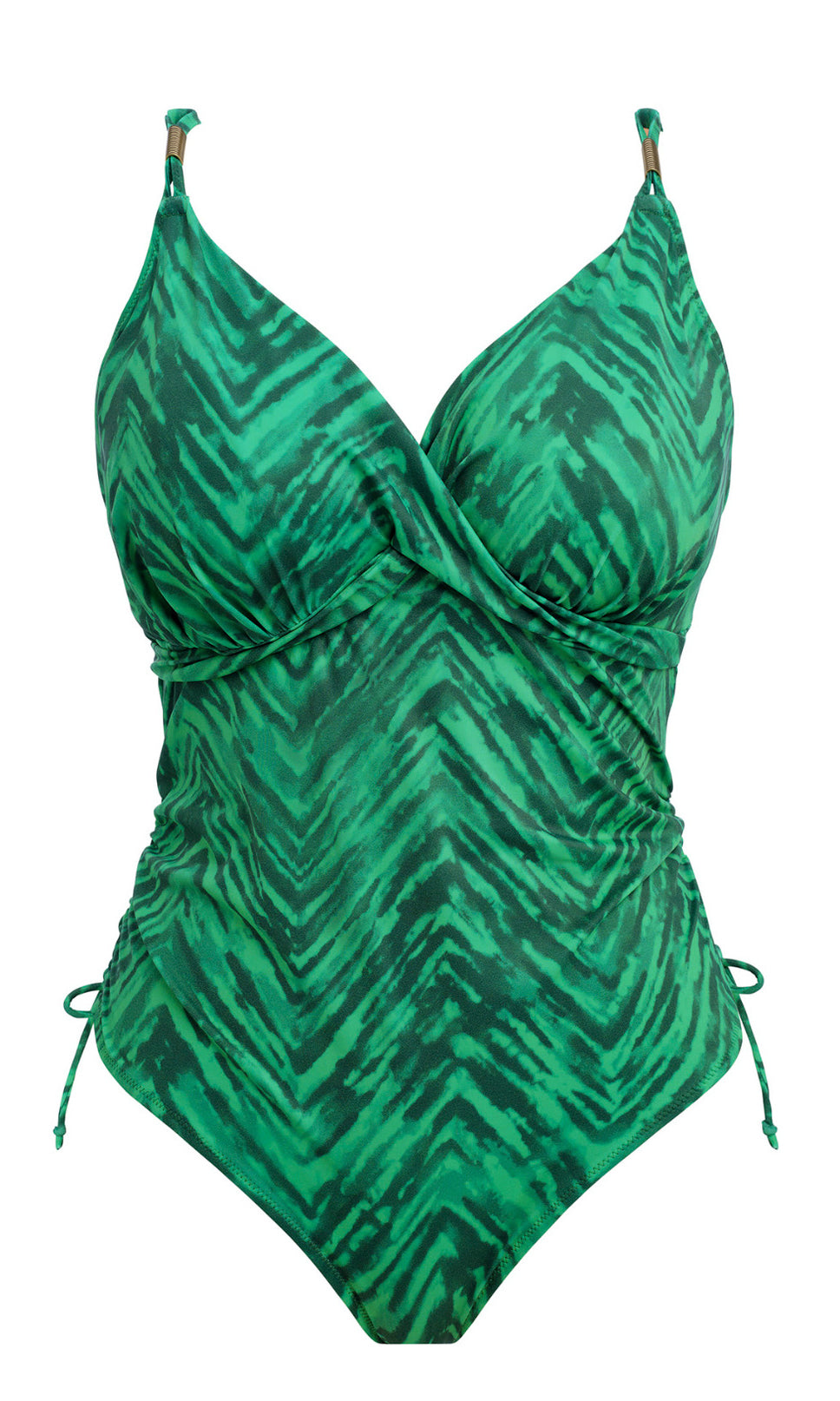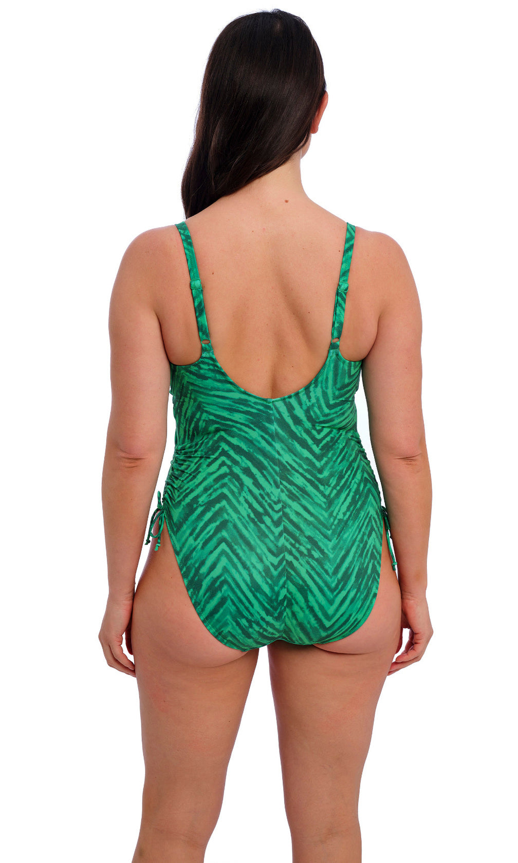 Dive into summer with all-new Punta Mita! This exclusive in-house designed print features a combination of Emerald green hues that make up the zig-zag look of this collection. We’re loving the apex loop detailing on the UW Full Cup Bikini Top and UW Plunge Swimsuit!