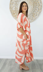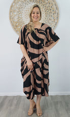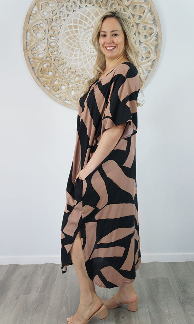 Introducing the Bermuda Kaftan in our "Kerala" print. This is a long, plus size kaftan featuring front shirring, side pockets and splits.