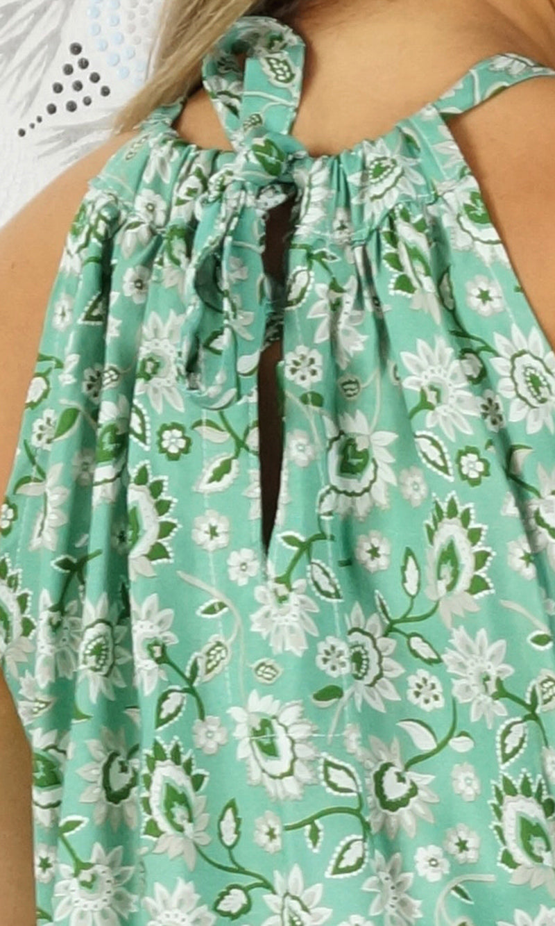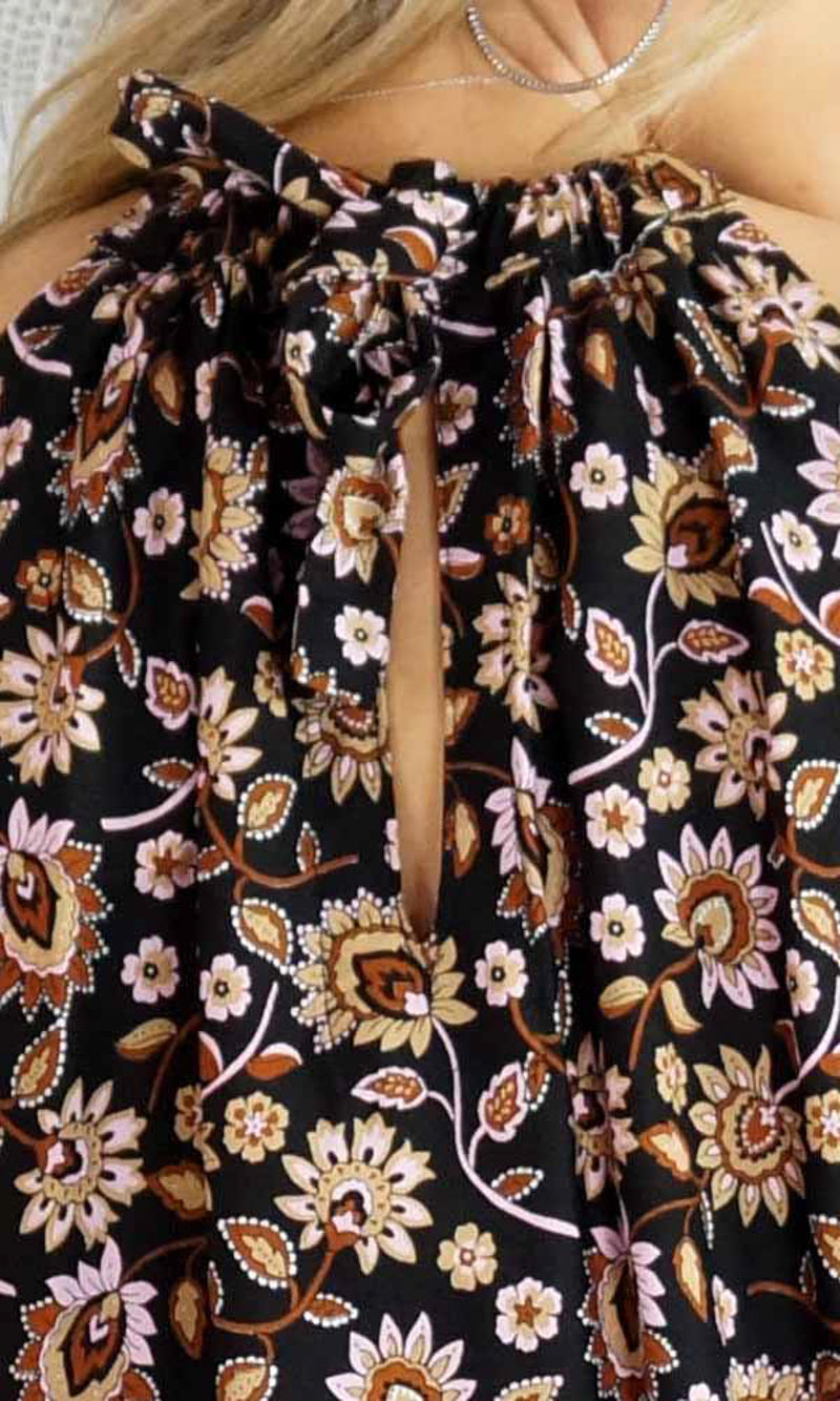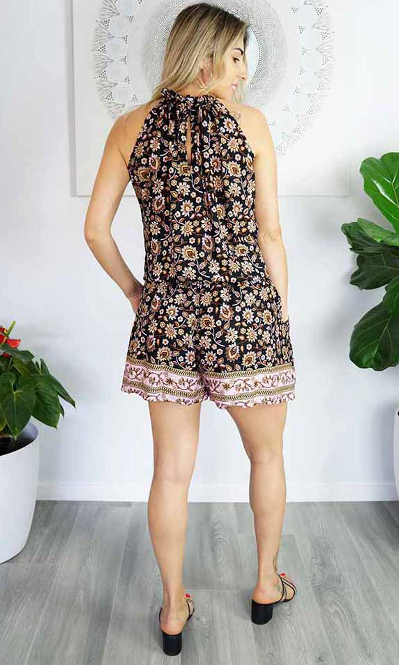 The halter neckline on the Chloe Jumpsuit is an elegant way to show your shoulders. The adjustable tie at the neck, side pockets and the elastic waistband make this jumpsuit a flattering style for all shapes and sizes.
