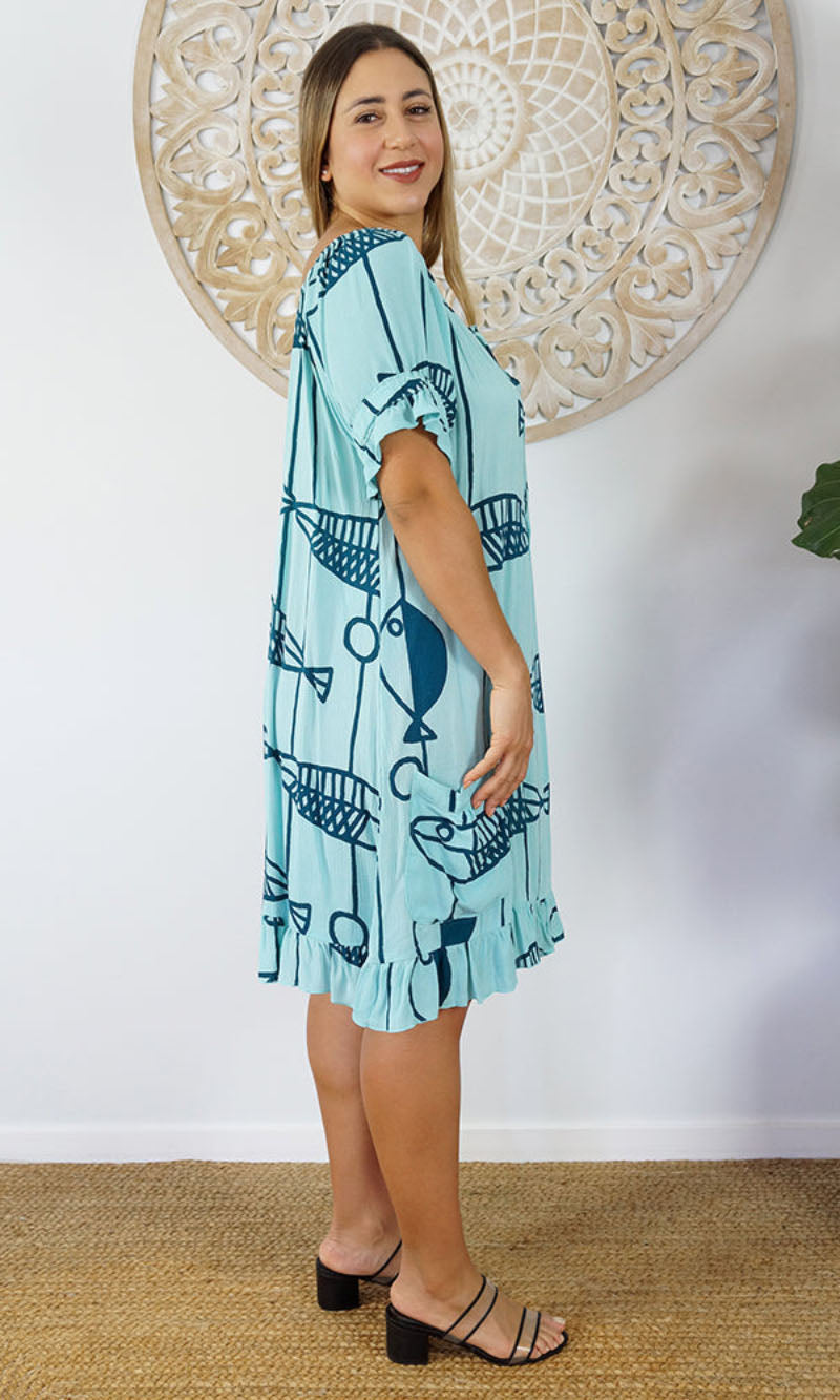 Rayon Cuba Dress Fish, More Colours