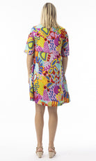 Featuring a colourful, eye-catching pattern, this dress boasts a relaxed fit with half sleeves and a flattering knee-length hem. Made from lightweight, breathable fabric, it's perfect for warm weather. The round neckline and convenient side pockets add functional elegance, making it ideal for both casual outings and beach holidays.