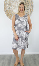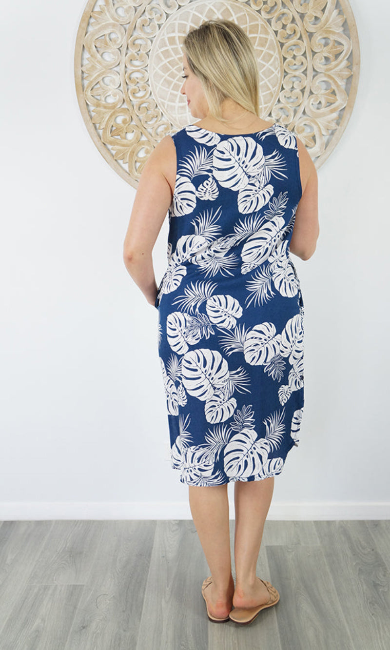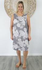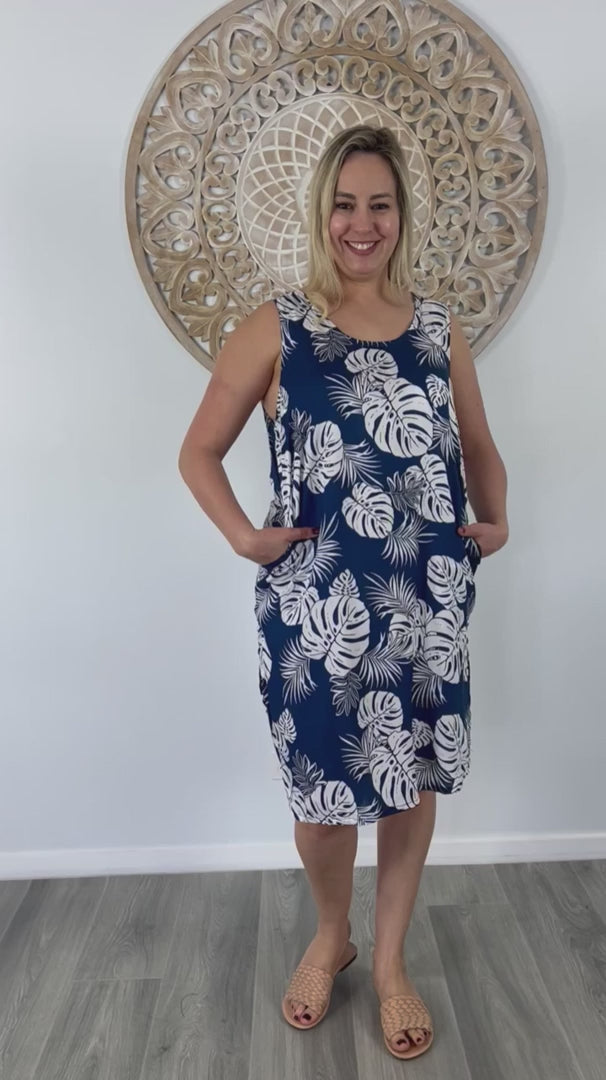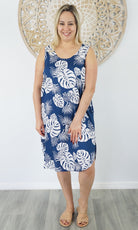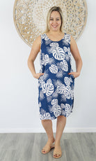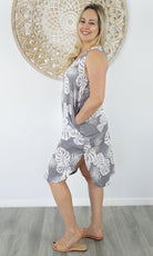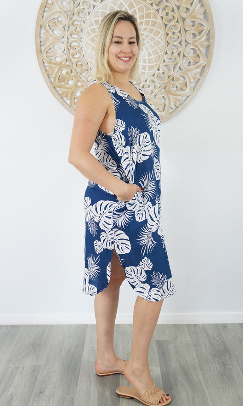 Expertly crafted from 100% rayon, this relaxed, wide-shoulder dress features adjustable elastic under the arms for a customizable fit for all body types.
