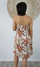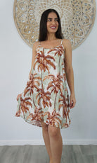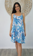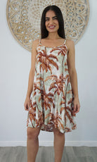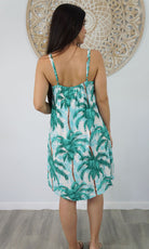 This is a lightweight mini dress that features thin adjustable straps with elastic on the back.