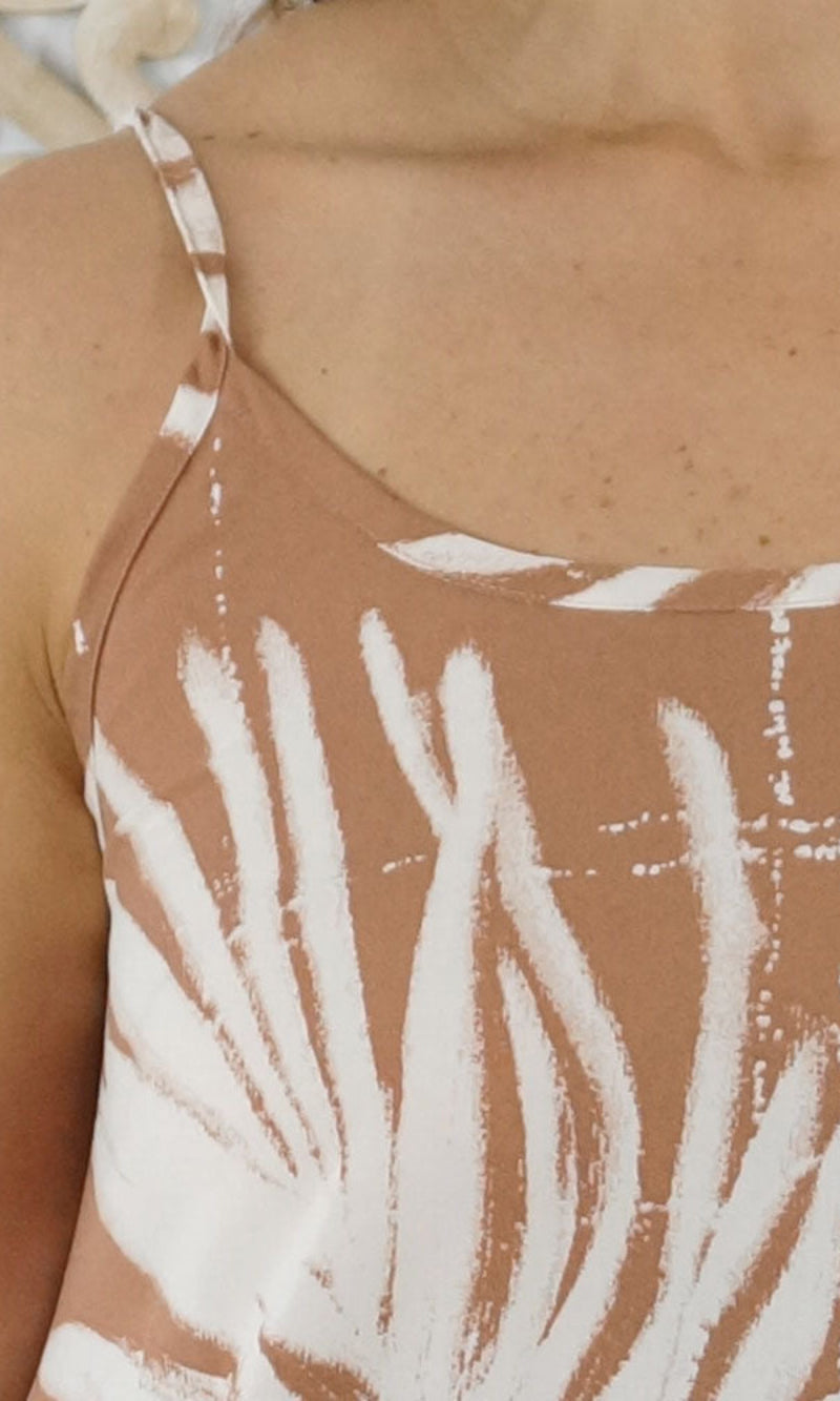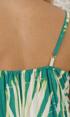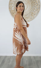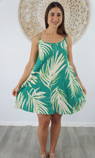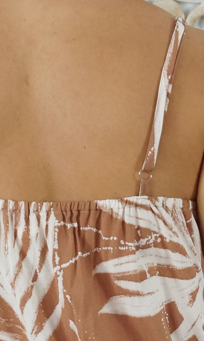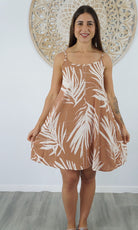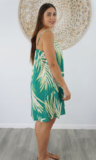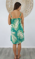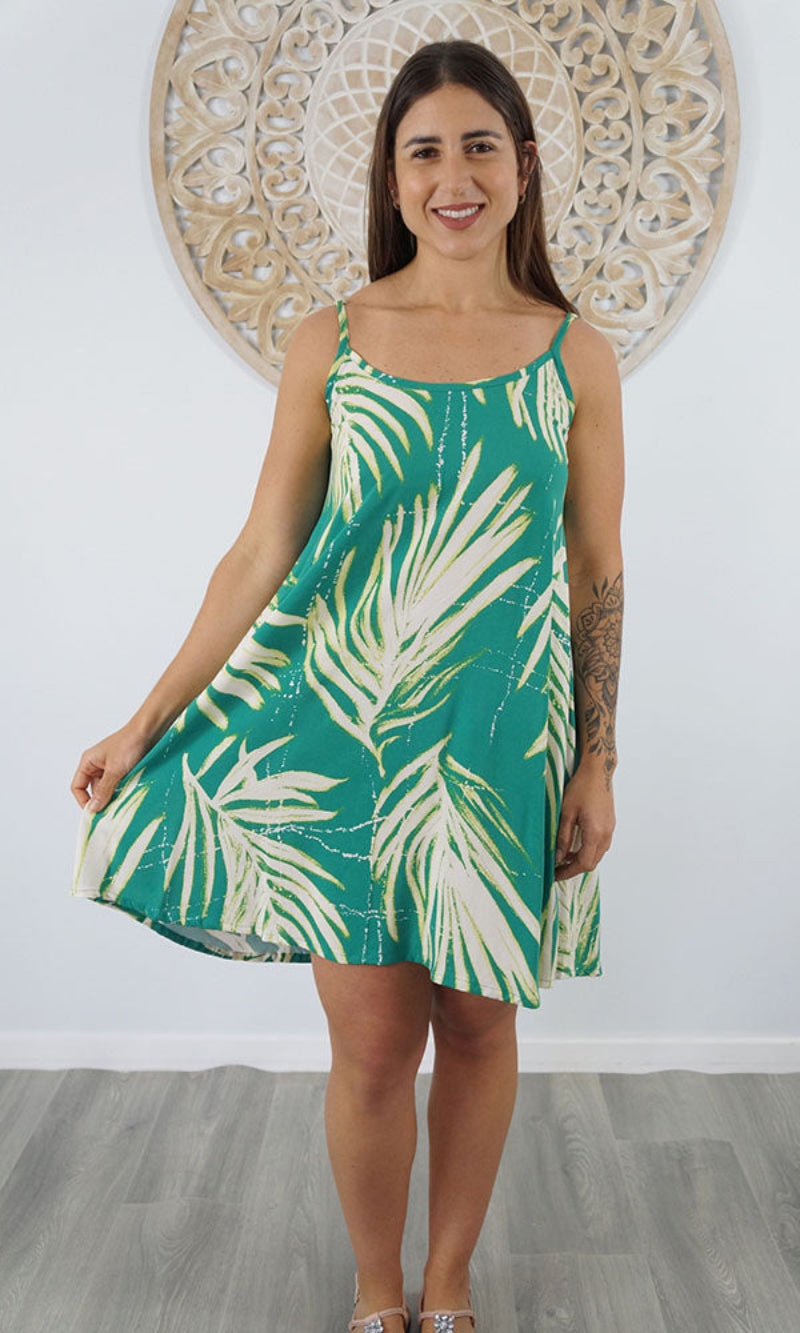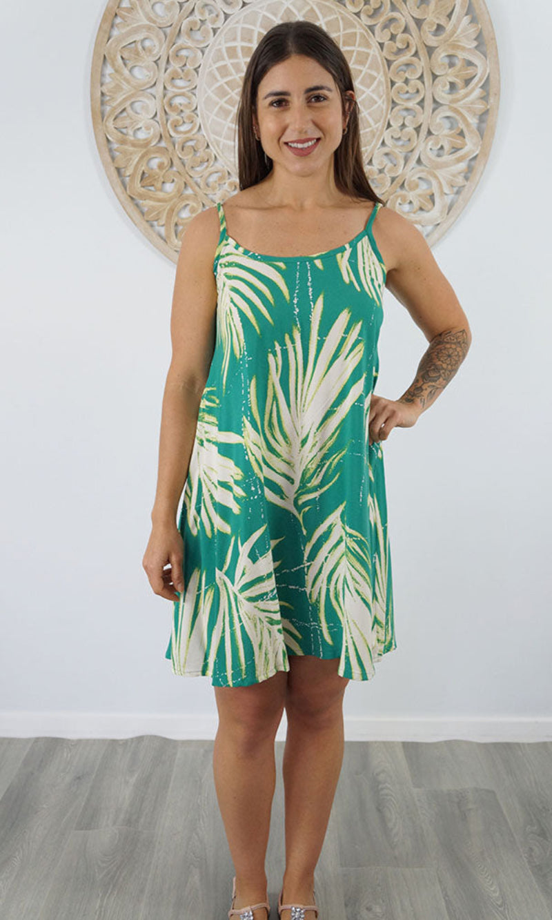 This is a lightweight mini dress that features thin adjustable straps with elastic on the back.