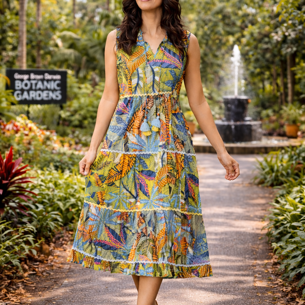 Crinkle Rayon Dress Godet Short Sleeve Tayrona