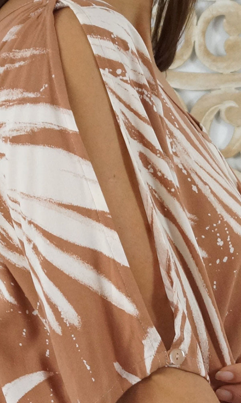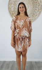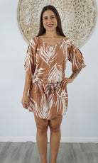 Made from a cool rayon with open sleeves and a matching fabric tie for around the waist this dress is perfect for summer.