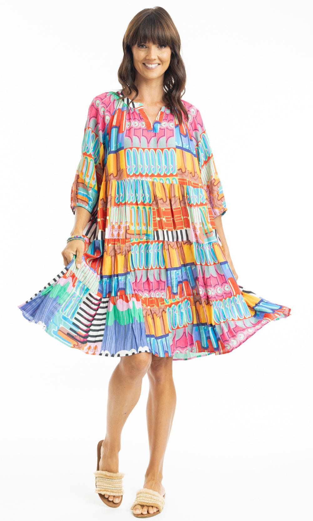 Rayon Dress Layers 3/4 Sleeve Diana
