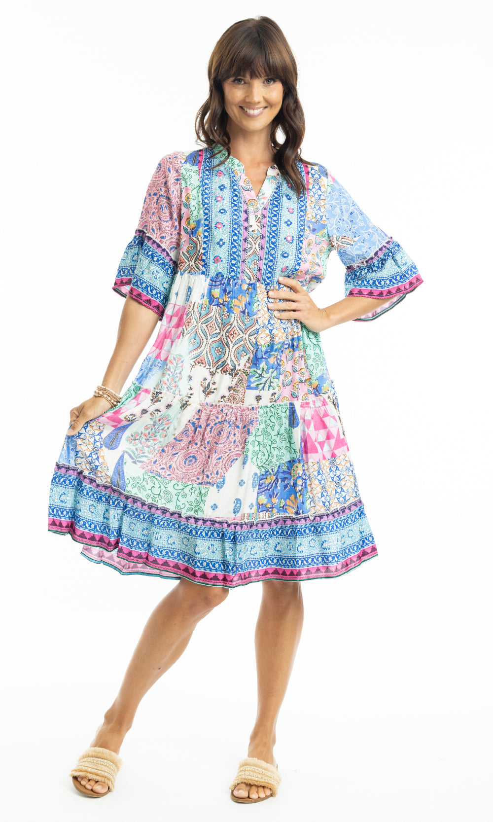 Rayon Dress Layers 3/4 Sleeve with Frill Emma