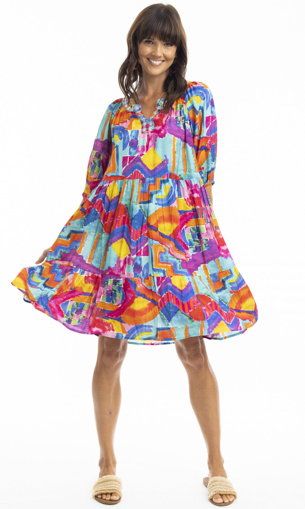 Rayon Dress Layers 3/4 Sleeve Frida