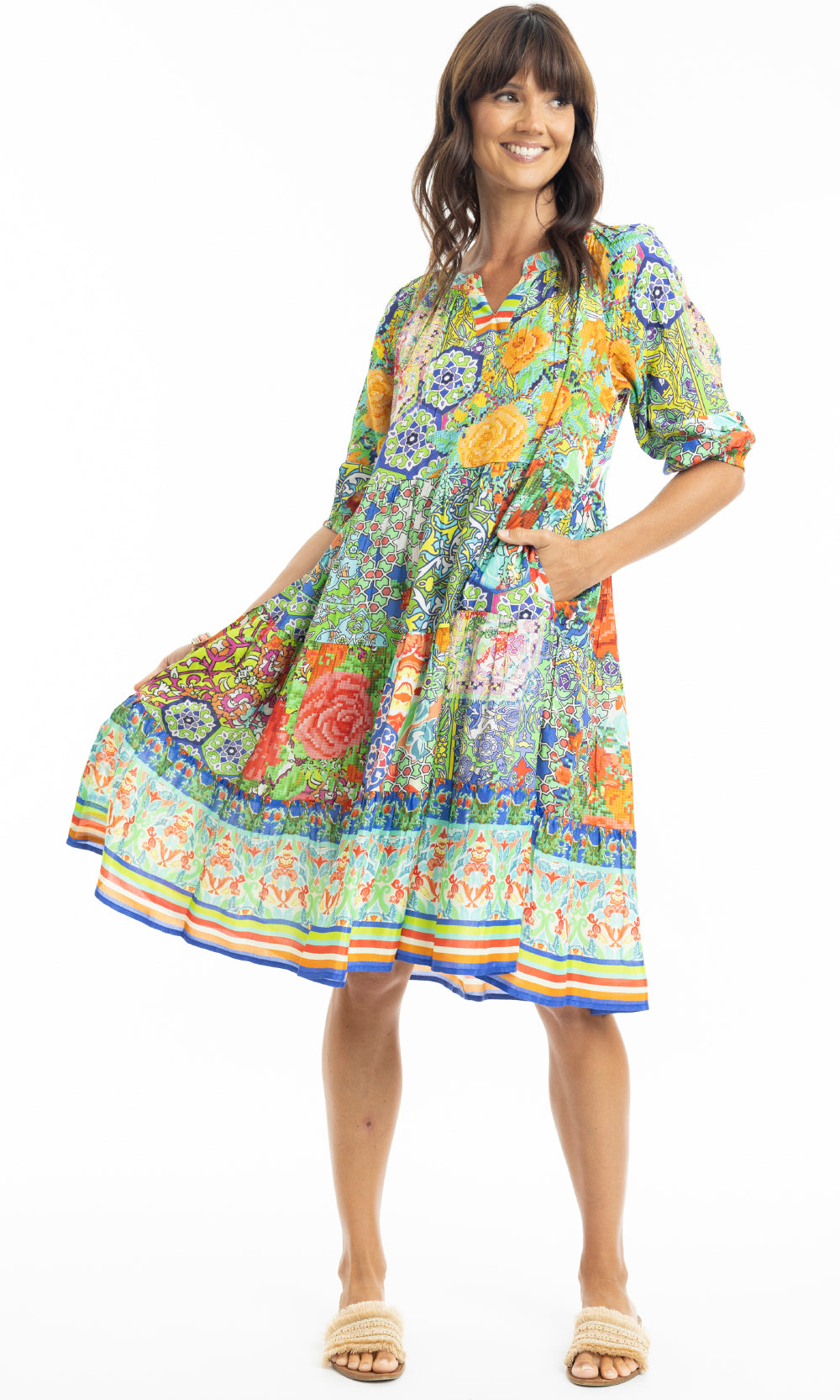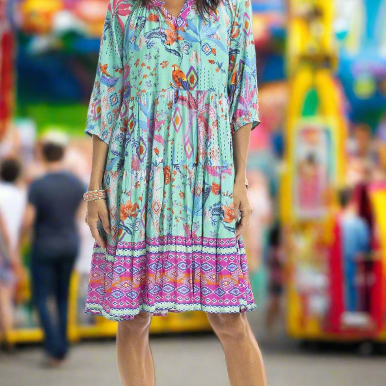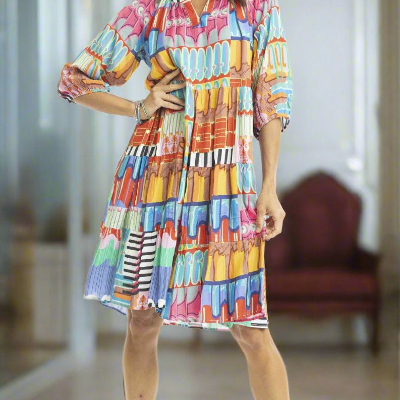 Rayon Dress Layers 3/4 Sleeve Tara