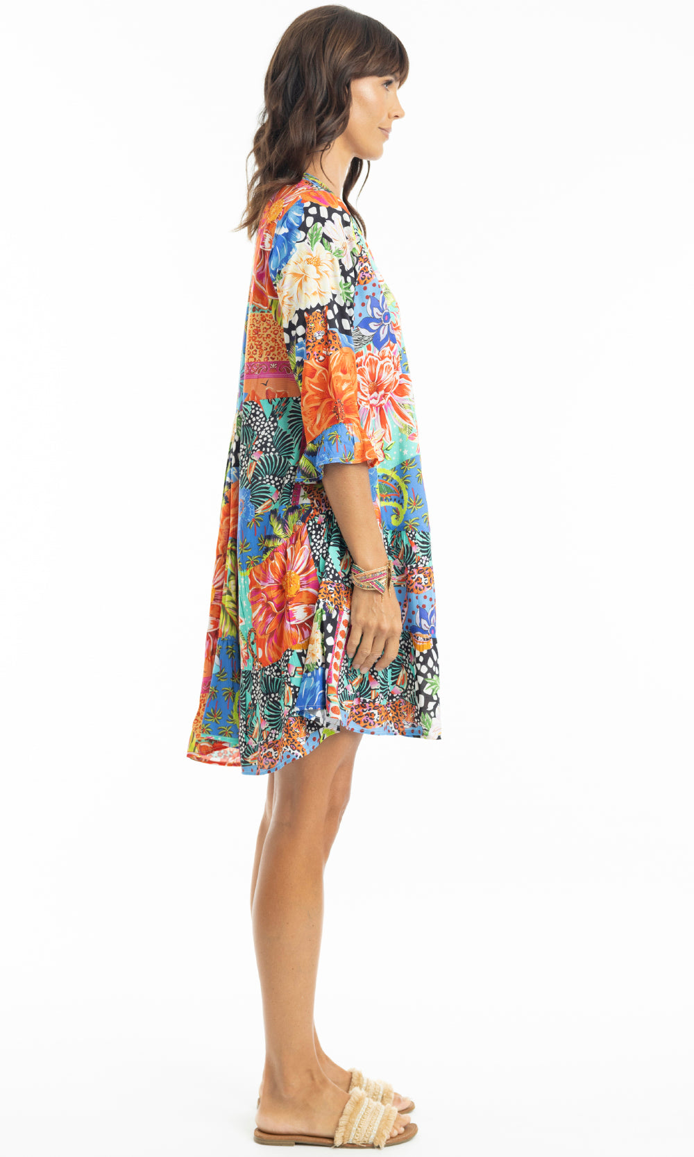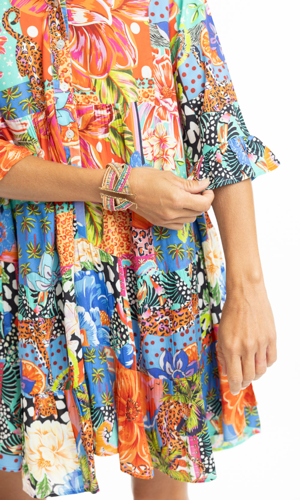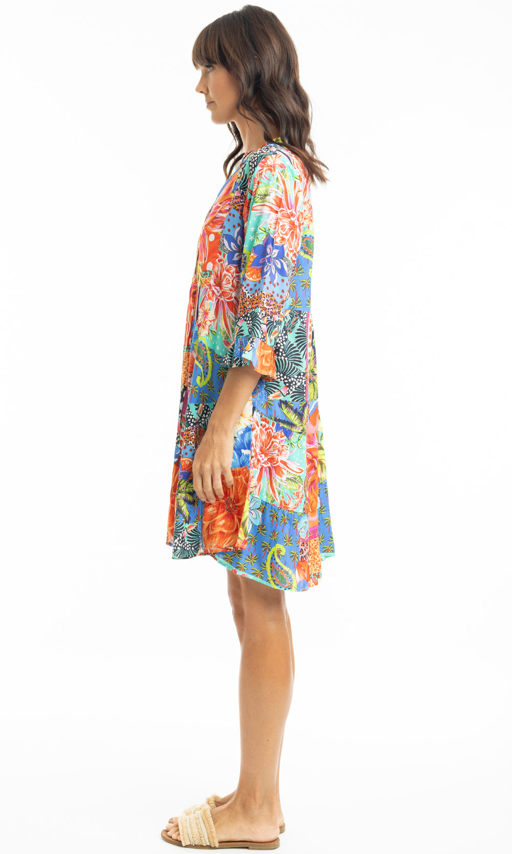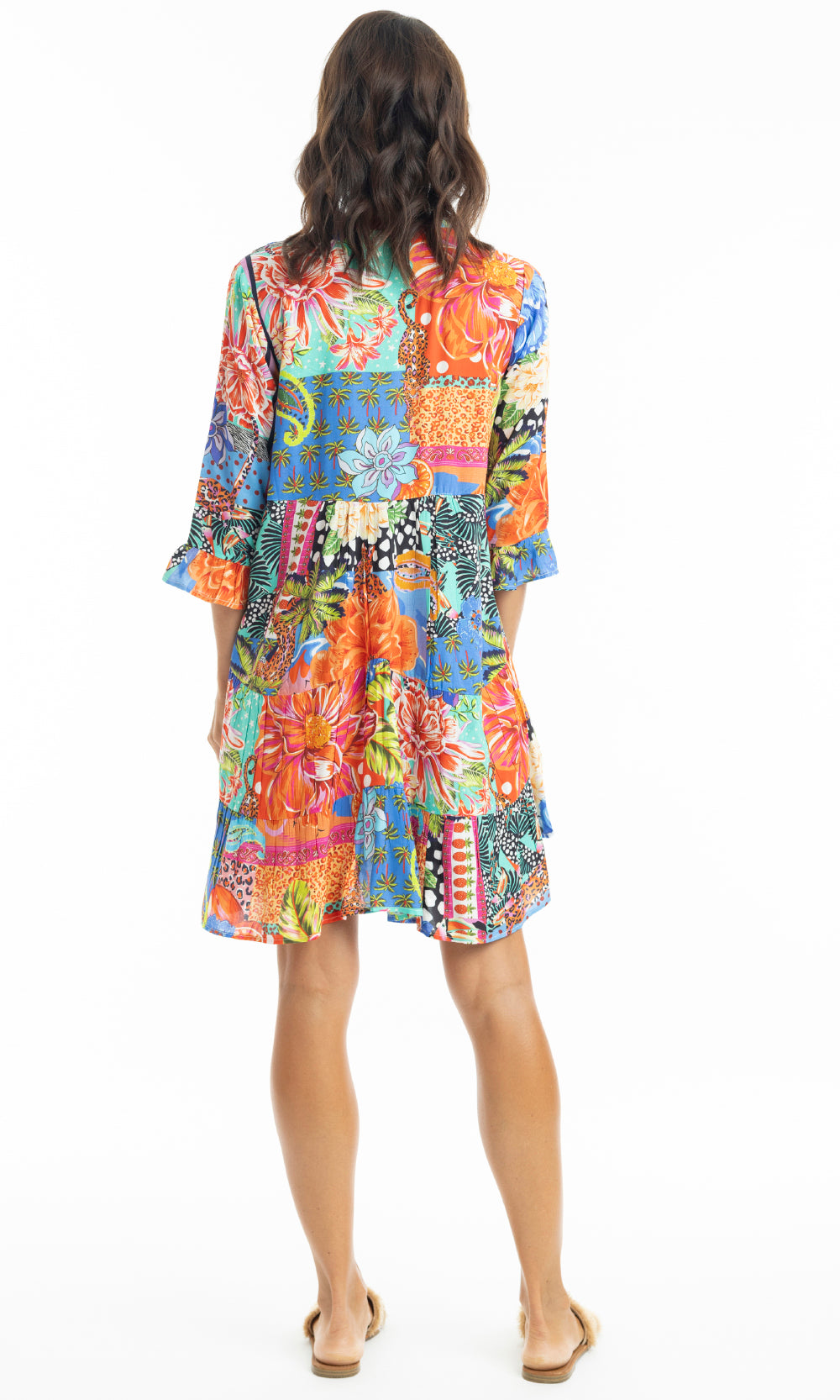 Rayon Dress Layers 3/4 Sleeve with Frill Maeli Orange
