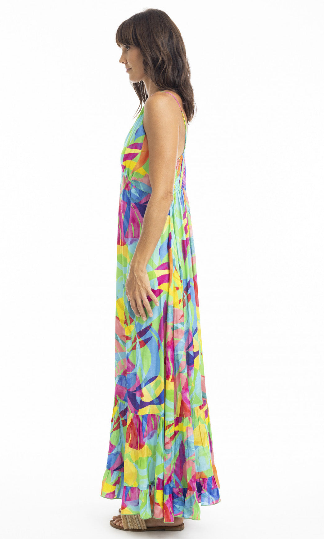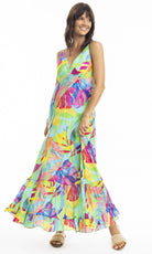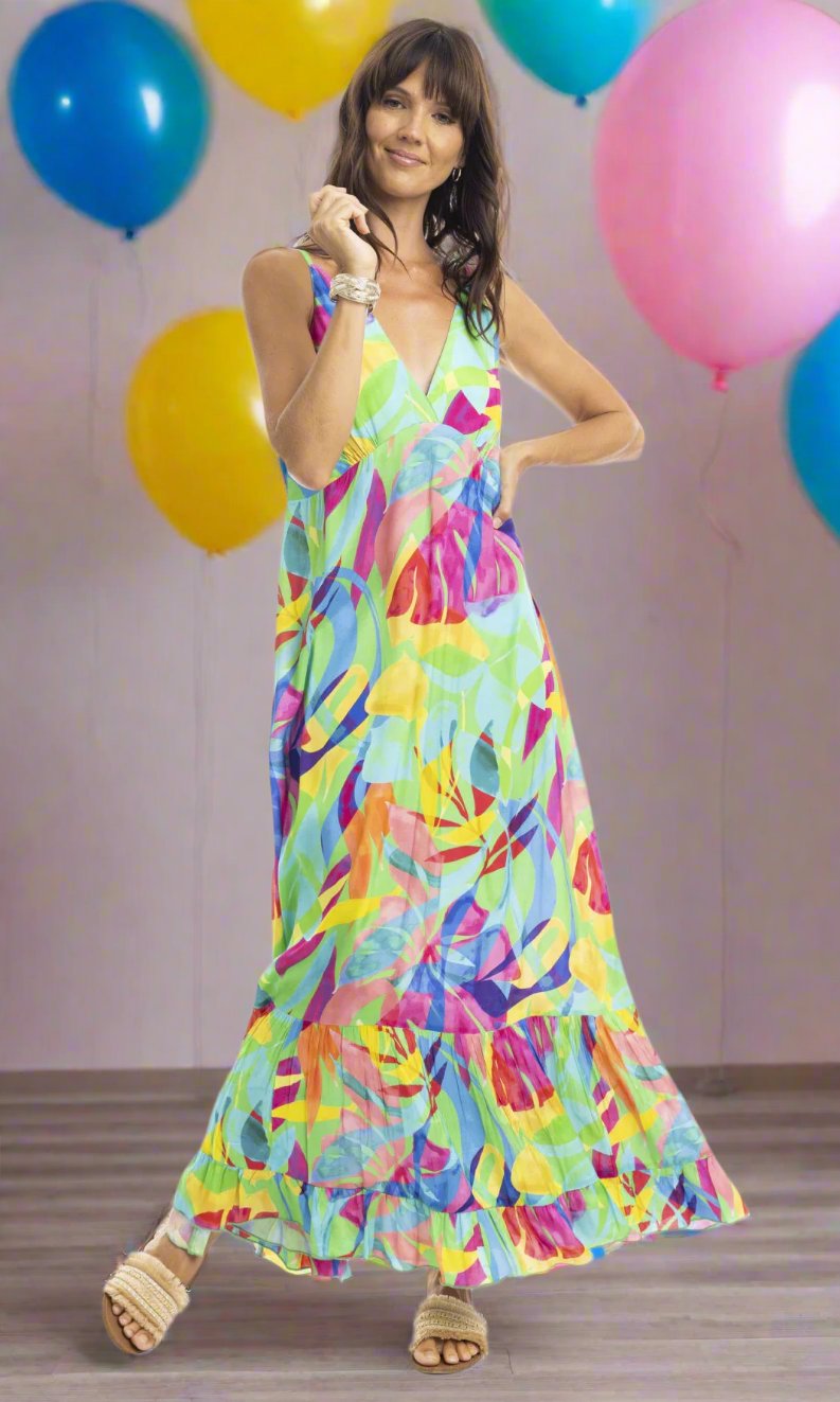 Rayon Dress Maxi Strappy Melinda Green
