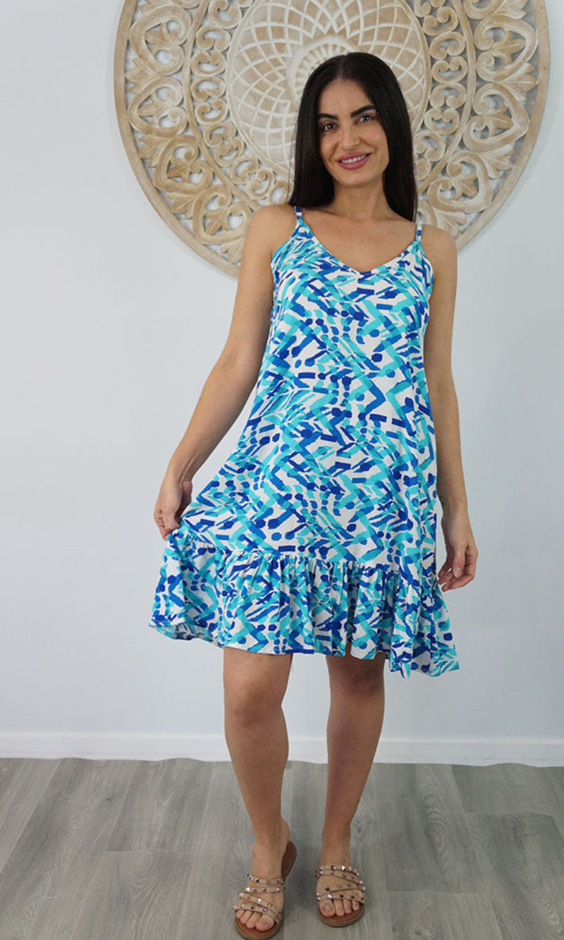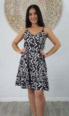 The Melody Dress offers a comfortable and flattering fit with its adjustable straps and elastic easement under the arms. Crafted from soft rayon, it features a stylish V-neckline front and back, complemented by a frill hem for graceful movement. This dress is designed to support your day with ease and elegance.