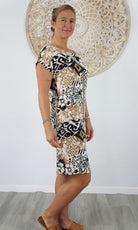 The Michelle Dress is a tried and true favorite. The simple t-shirt shape is made elegant with soft and smooth rayon material and added length on the bottom so you can wear the Michelle to work or over bathers. Versatile and comfortable, the Michelle Dress is a timeless style. Available in sizes 8-10, 12-14, 16-18.
