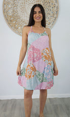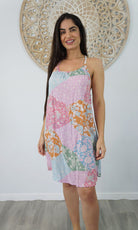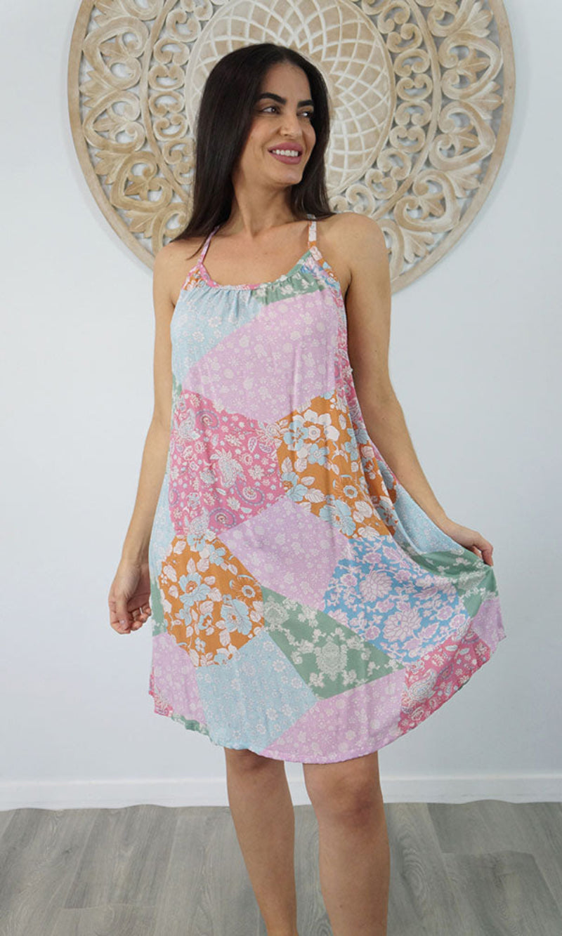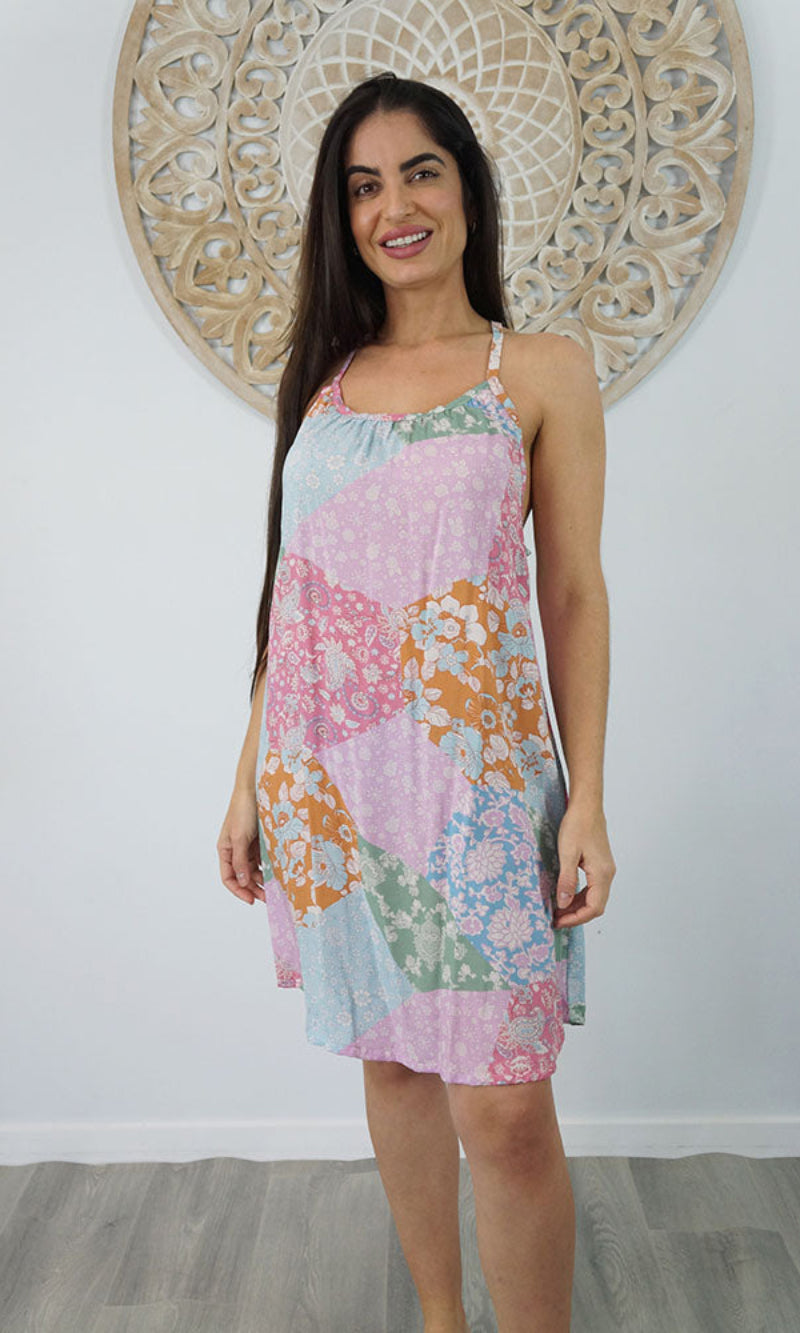 The Short Sherbet dress offers a comfortable and stylish option for warm weather. Made from soft, lightweight rayon, it helps keep you cool, while its loose, flowing silhouette allows for easy movement. Featuring adjustable straps and a distinctive wooden ring at the back, it showcases a trendy racerback design with an elegant touch.