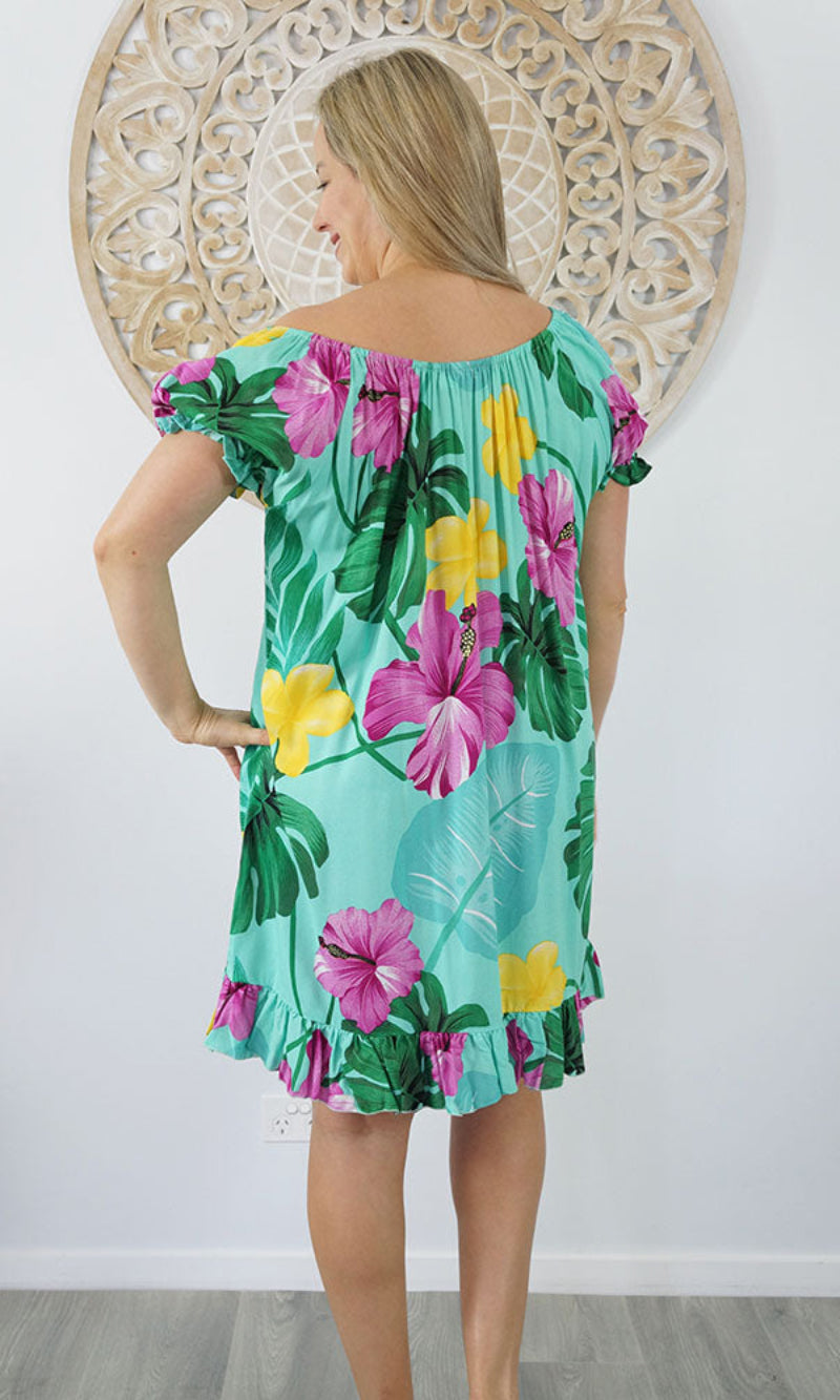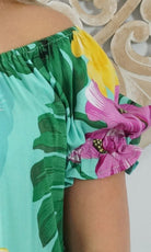The Diva Dress is made with 100% rayon. You can wear this dress on or off the shoulders, as a kaftan over swimmers or as a dress.