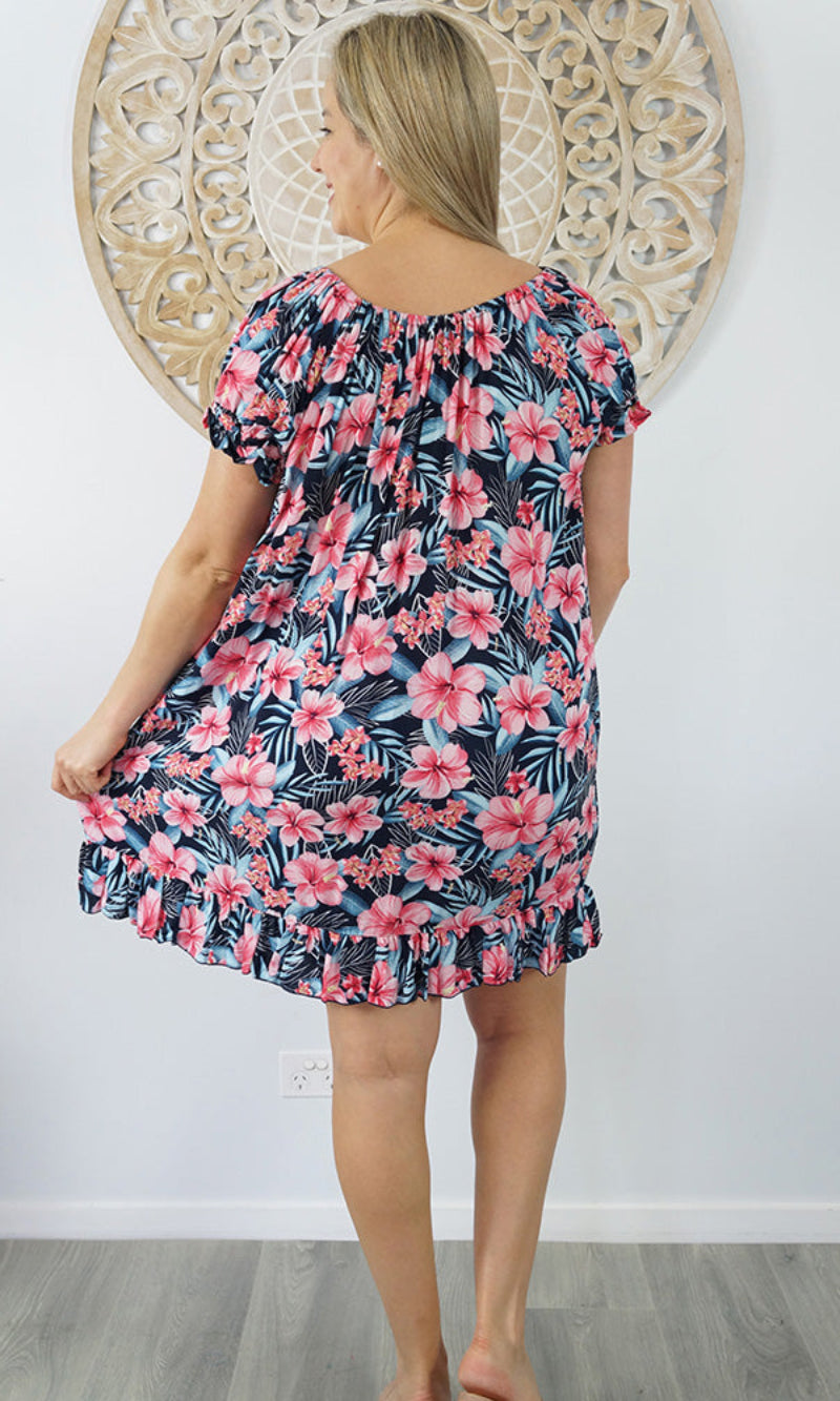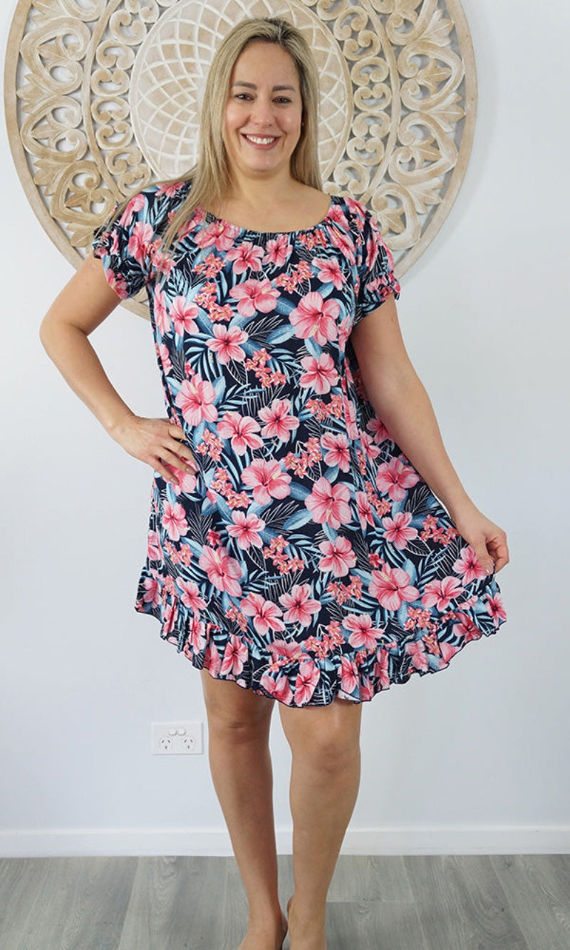 The Diva Dress is made with 100% rayon. You can wear this dress on or off the shoulders, as a kaftan over swimmers or as a dress.