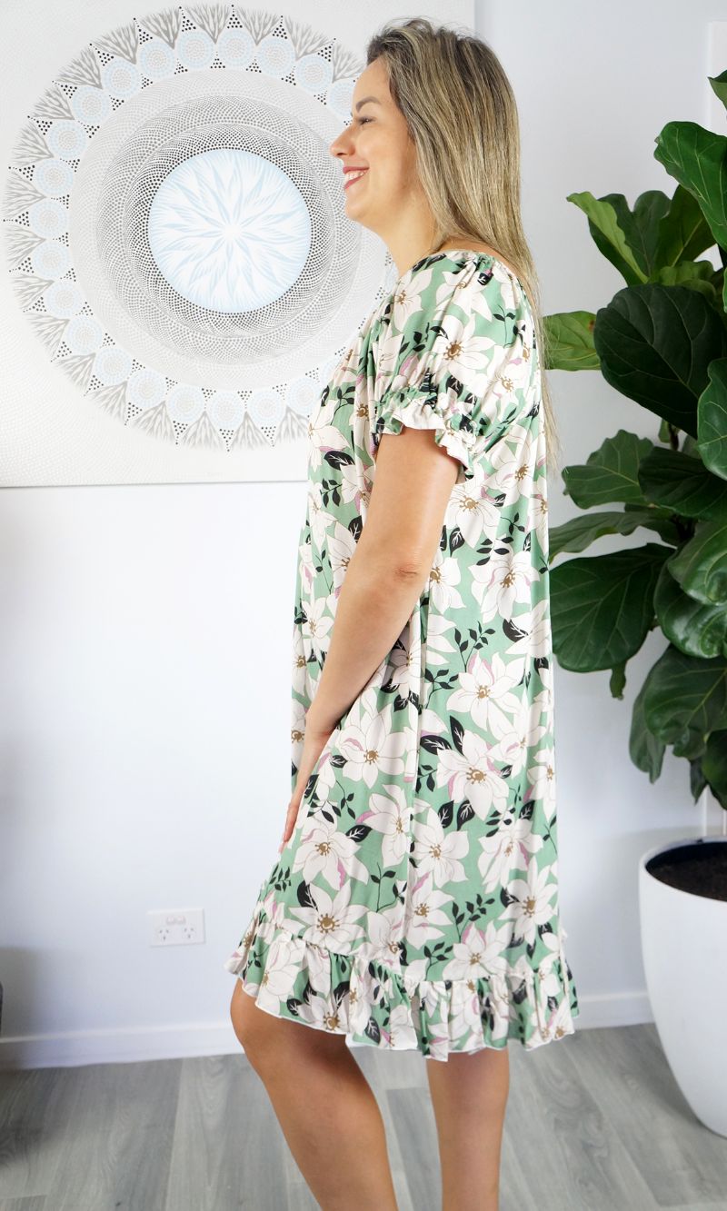 The Diva Dress is made with 100% rayon. You can wear this dress on or off the shoulders, as a kaftan over swimmers or as a dress.