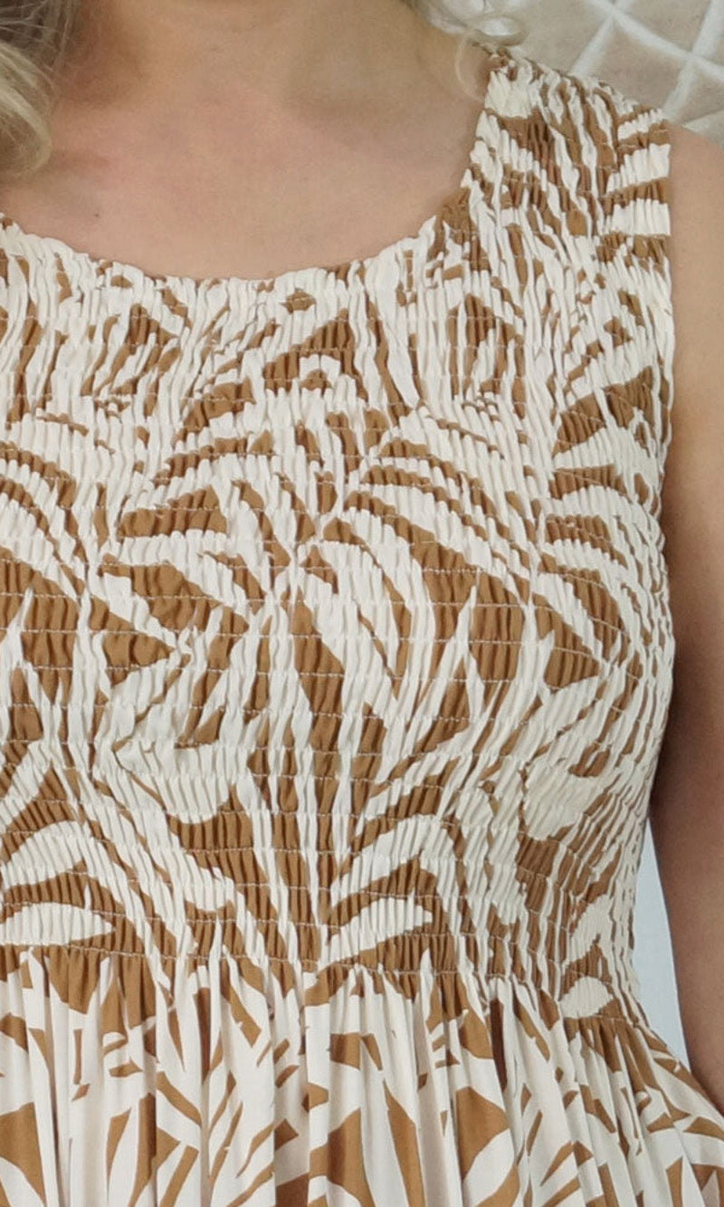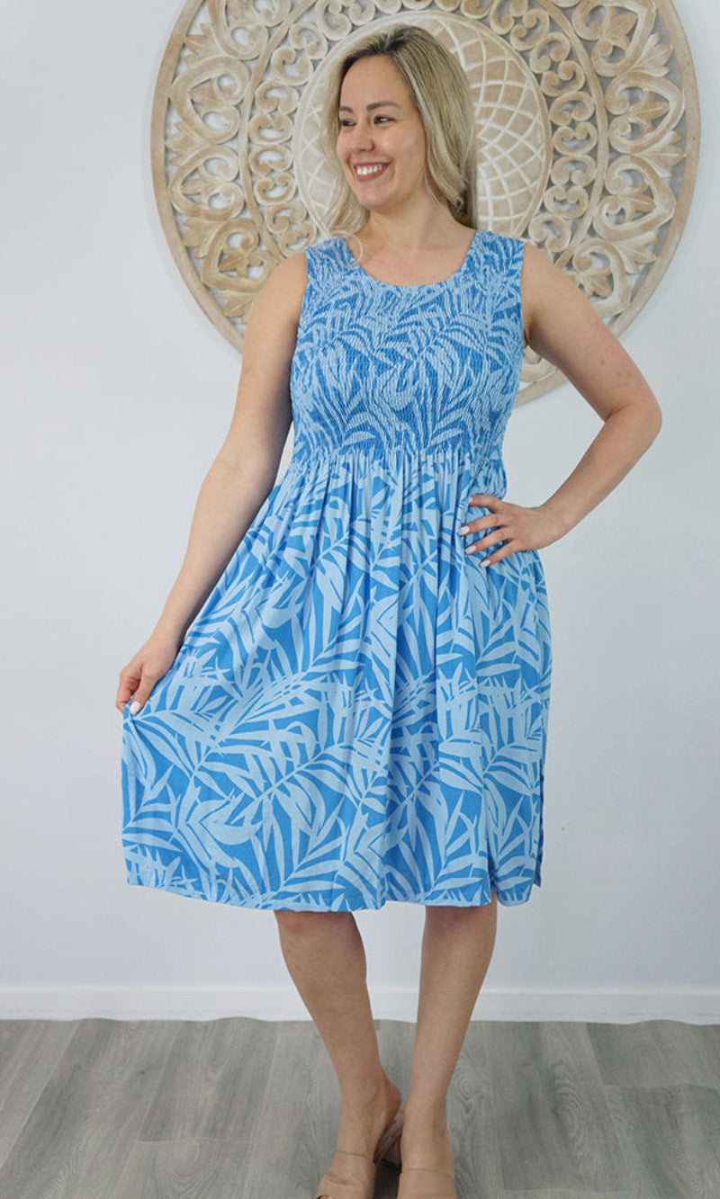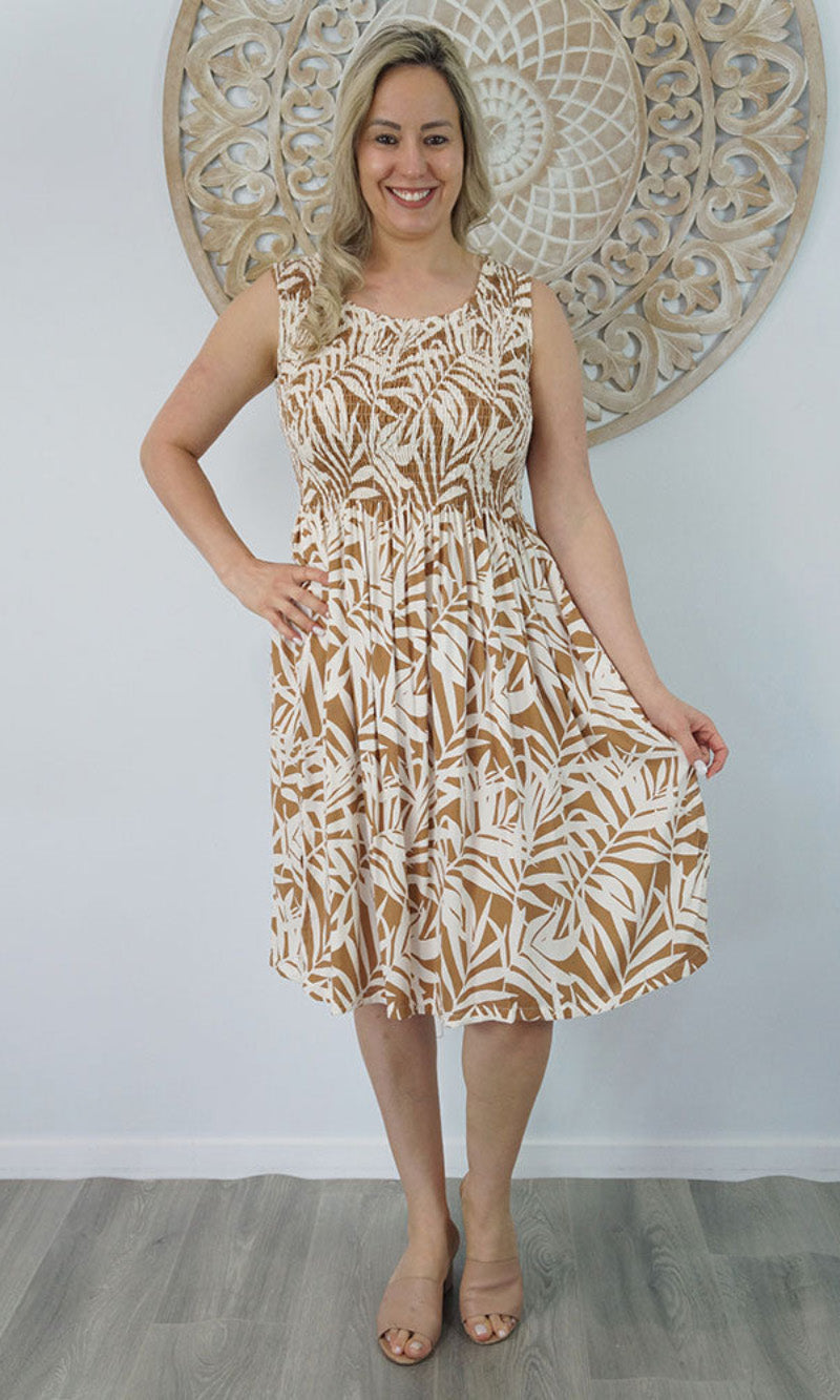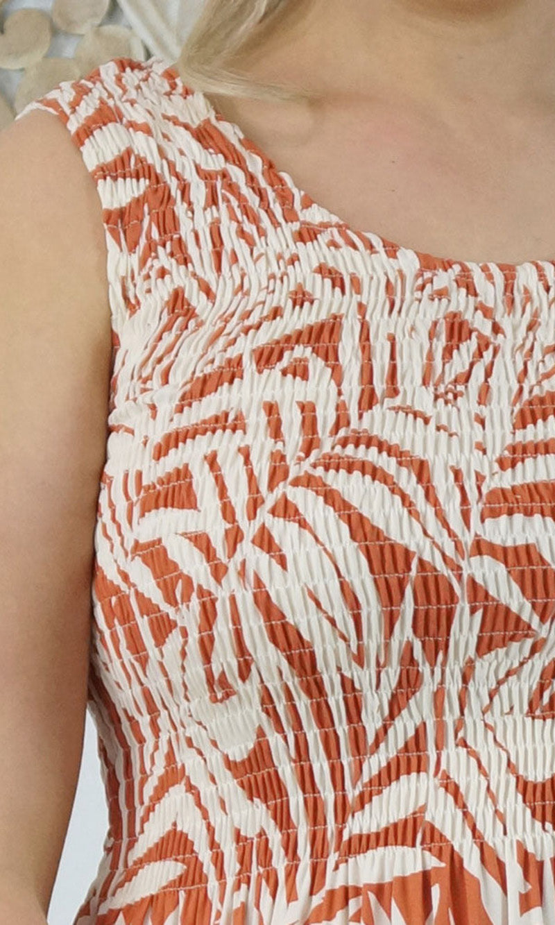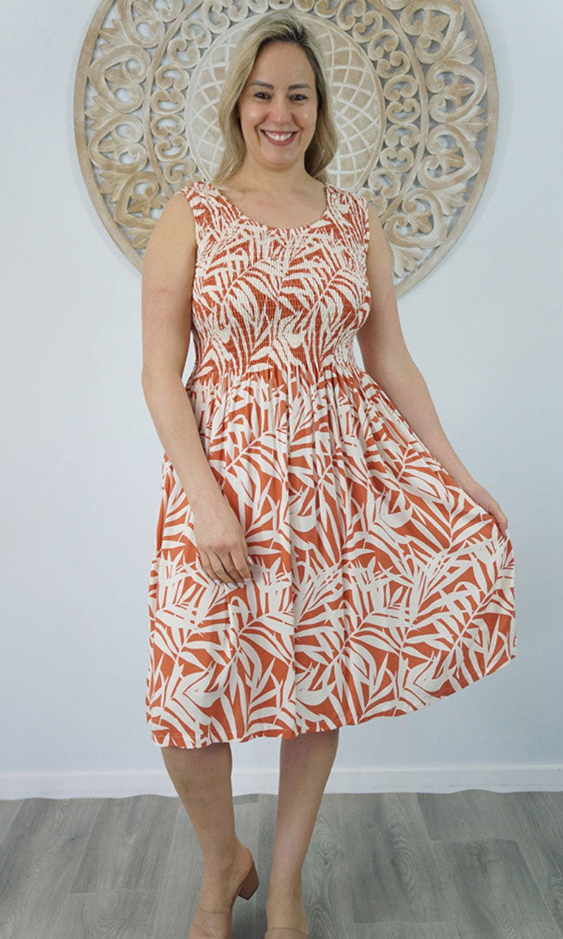 Abstract design singlet shirring dress. To suit most sizes 8-18. Lovely and cool rayon fabric.
