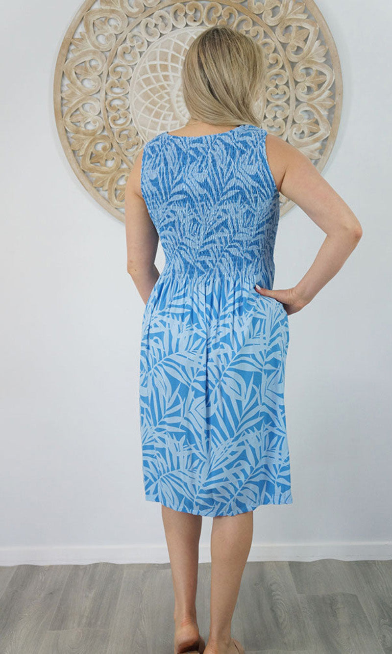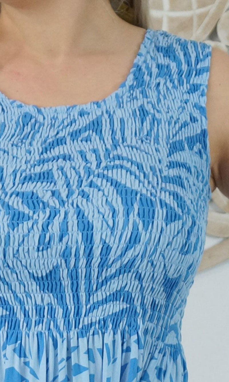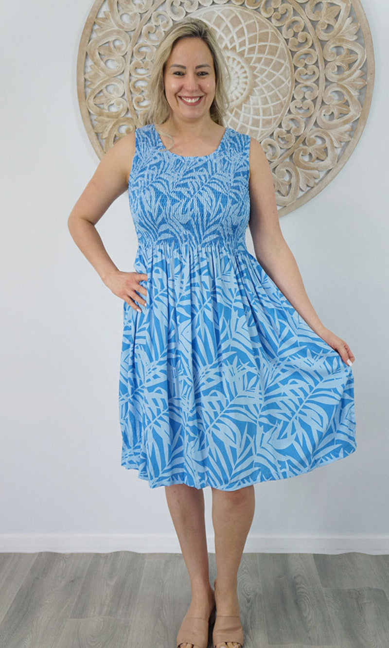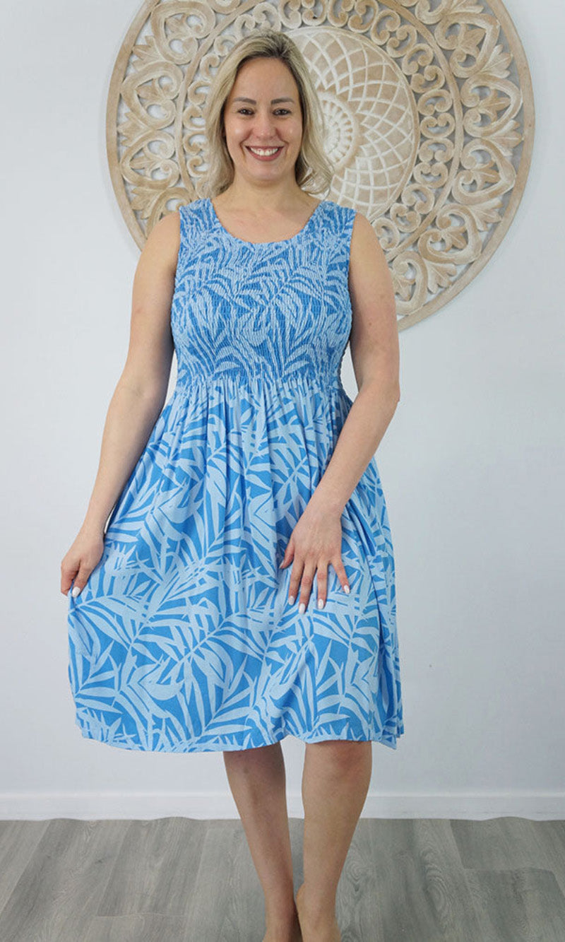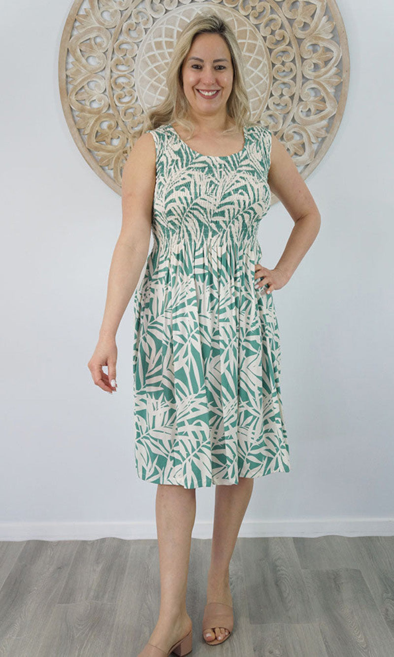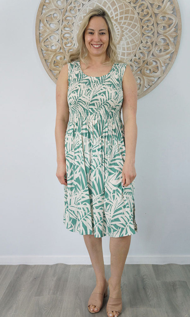 Abstract design singlet shirring dress. To suit most sizes 8-18. Lovely and cool rayon fabric.