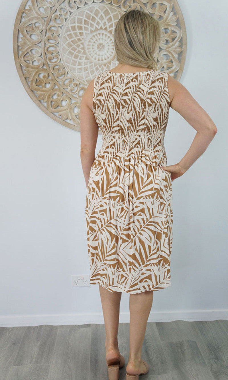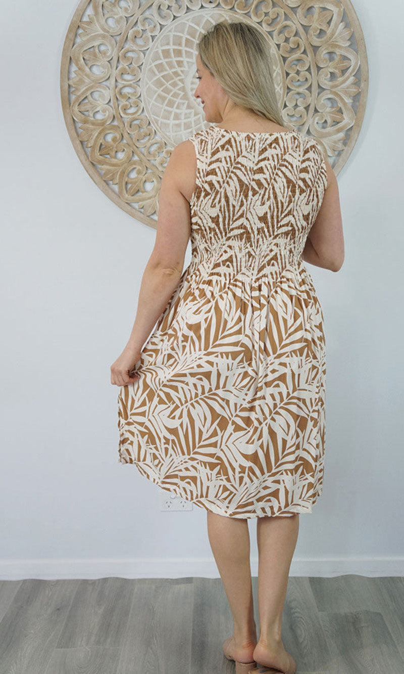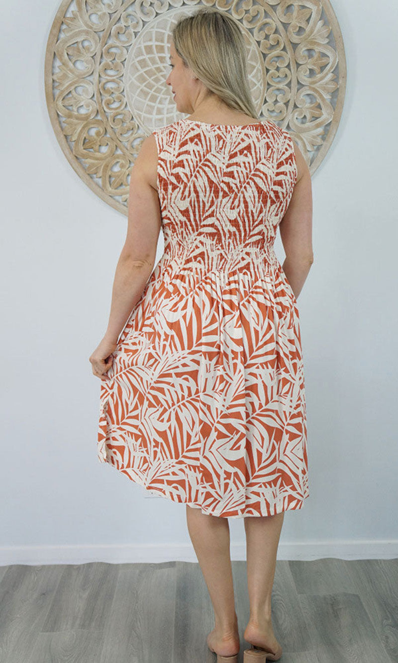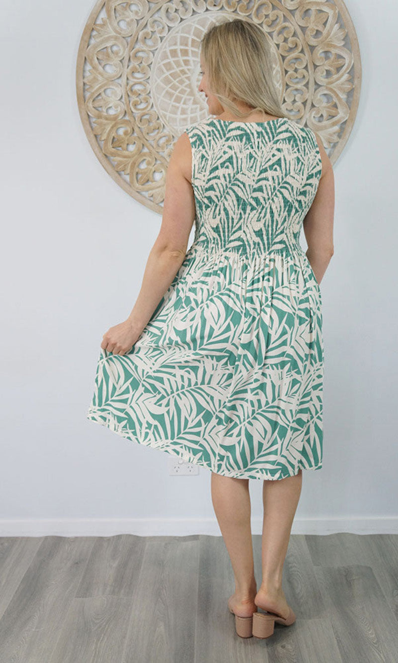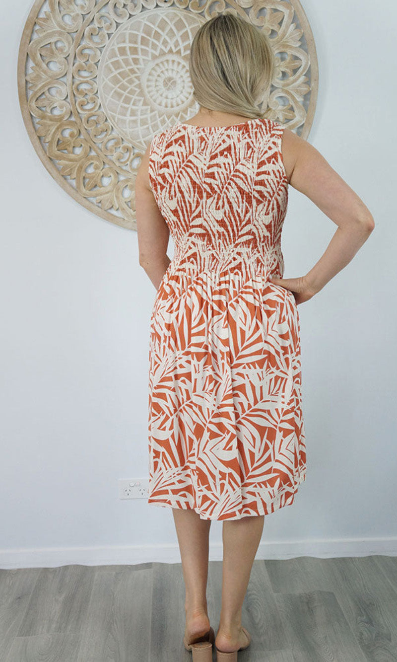 Abstract design singlet shirring dress. To suit most sizes 8-18. Lovely and cool rayon fabric.